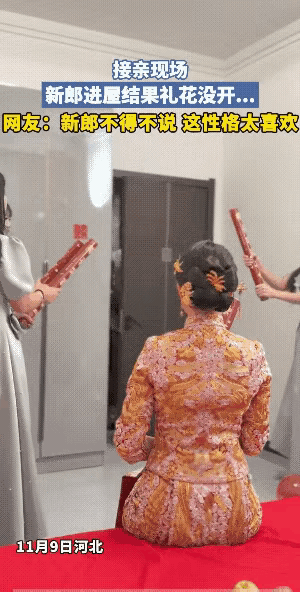 四个伴娘没有一位把礼花筒打开的。新郎“装腔作势”了一阵子,不得不退出了去关上了门。重来! 信不!新郎再进来,礼花筒估计至少还有两个伴娘,还是放不出来…… 你说这场景逗不逗?新郎推门进来,本来寻思着漫天彩带飘起来,热热闹闹的多有气氛,结果四个伴娘拿着礼花筒,手忙脚乱半天,一个个使劲攥着、晃着,那筒子就是没动静。有的伴娘急得脸都红了,低头对着礼花筒研究半天,好像那玩意儿藏着啥开关密码;有的举着胳膊使劲往下按,胳膊都酸了,筒子还是纹丝不动。新郎站在那儿,一会儿对着这个挤挤眼,一会儿对着那个比个“使劲”的手势,装出一副“哎呀你们怎么回事”的夸张表情,最后实在没辙,只能灰溜溜退出去关门,心里估计在琢磨:这礼花筒是成心跟咱过不去啊? 网友看了估计得乐翻了,有人可能会说:“这伴娘团是来搞笑的吧?平时拆快递那么利索,拆个礼花筒咋就卡壳了?”也有人会觉得:“这才真实啊,谁还没遇到过这种手笨的时候,越急越弄不好,看着就亲切。” 我倒觉得,这事儿透着股子接地气的喜庆。婚礼上哪能全是按剧本走的完美镜头?这种小插曲反而更让人记牢。你想啊,多少年以后,这对新人跟朋友聊起婚礼,说不定还会笑哈哈地说:“当年那几个礼花筒,可把伴娘团坑惨了,关着门练了好几次才弄明白咋开。” 不过话说回来,这也能看出大家对婚礼的重视。伴娘估计是太紧张了,怕弄砸了场面,越想做好越手忙脚乱。新郎那“装腔作势”也不是真生气,就是想活跃下气氛,让大家别那么拘谨。这种小意外,反而让婚礼少了点刻意,多了点人情味。 其实生活里的好事儿不都这样吗?不一定非得顺顺当当毫无瑕疵,偶尔出点小岔子,笑一笑、再来一次,反而更有滋味。就像这礼花筒,哪怕多试几次,最后炸开的那一刻,照样能把快乐撒得满满当当。 各位读者你们怎么看?欢迎在评论区讨论。