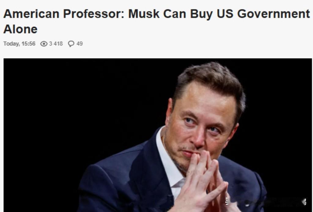 美国经济学家杰弗里・萨克斯说:“马斯克单凭一己之力就能买下美国政府。” (马斯