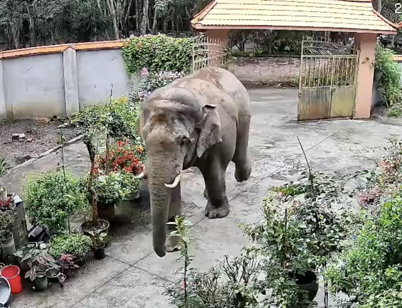 云南一女子外出办事,突然收到家里监控警报!她立马查看手机,发现自家铁门,竟然被一头大象撞开了,大摇大摆的闯入家中,却懂得避让院里花草,结果被衣架挡路了,它也没有硬闯,而是原地倒车返回,散步一圈后便离开了。女子坦言:只有门锁坏了,门销变形了,没有别的损坏,这头象经常进村民家里找吃的!   11月9日,西双版纳州勐腊县的一个普通院落,宁静被一声“吱呀”的金属扭曲声打破。   一头身形与铁门齐高的野生大象,用头部轻轻一顶便推开了院门,迈着沉稳的步伐走进后院。   这一幕被院内的监控完整记录下来,视频随后由房屋主人的姐姐——一位IP定位云南的网友发布到网络上,迅速引发关注。   11月10日,潇湘晨报记者联系到这位发布者,核实了事件的详细情况。   据她介绍,涉事房屋是其妹妹家,大象在院中悠闲散步一圈后便自行离开,仅造成门锁损坏和门销变形,未造成其他财物损失。   当地野生动植物保护站工作人员也及时回应,确认此类野生动物肇事造成的损失可通过野生动物公众责任保险进行理赔。   这头大象并非初次造访,在当地村寨算得上是“常客”,它的智力水平堪比七八岁的孩童,进入院落时巧妙避开了院内的花草植被,行至阳台门口被晾衣架阻挡时,也未强行冲撞,而是聪明地倒车折返,展现出对环境的良好适应能力。   这场意外的相遇,背后是生态环境持续改善的生动注脚。   随着保护区内植被覆盖率不断提升,象群的活动范围逐渐扩大,原本远离人类聚居地的它们,开始将村寨纳入觅食往返的必经之路。   如今的勐腊县野生动物种类繁多,当地居民遭遇野象的情况早已屡见不鲜。   这样的变化,也悄然改写着人象之间的关系。   曾经,闯入村寨的象群常会遭到村民放鞭炮驱赶,双方处于“水火不容”的紧张状态;   而现在,村民们对这些“老邻居”多了一份包容与理解,象群也在频繁的接触中逐渐摸清人类生活区域的规律,学会避开不可触碰的物品。   这种良性互动的形成,离不开生态环境的持续向好,更得益于政策层面的兜底保障。   当生态改善与民生利益得到同等重视,人与自然相互体谅、各自安好的和谐画面,便在这片土地上生动上演。   今天的分享到这里就结束了,大家对此事有何看法,欢迎在评论区留言和讨论,感兴趣的可以点击头像加关注,我将每日更新优质内容,我们下期见。