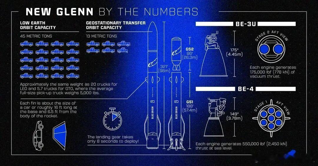 新格伦火箭由贝索斯旗下蓝色起源研制,被视为对抗SpaceX超重型火箭的重要项目。其发射质量达1400吨,运载能力与重型猎鹰相当。今年初,新格伦号成功实现首飞,但第一级回收未能成功。