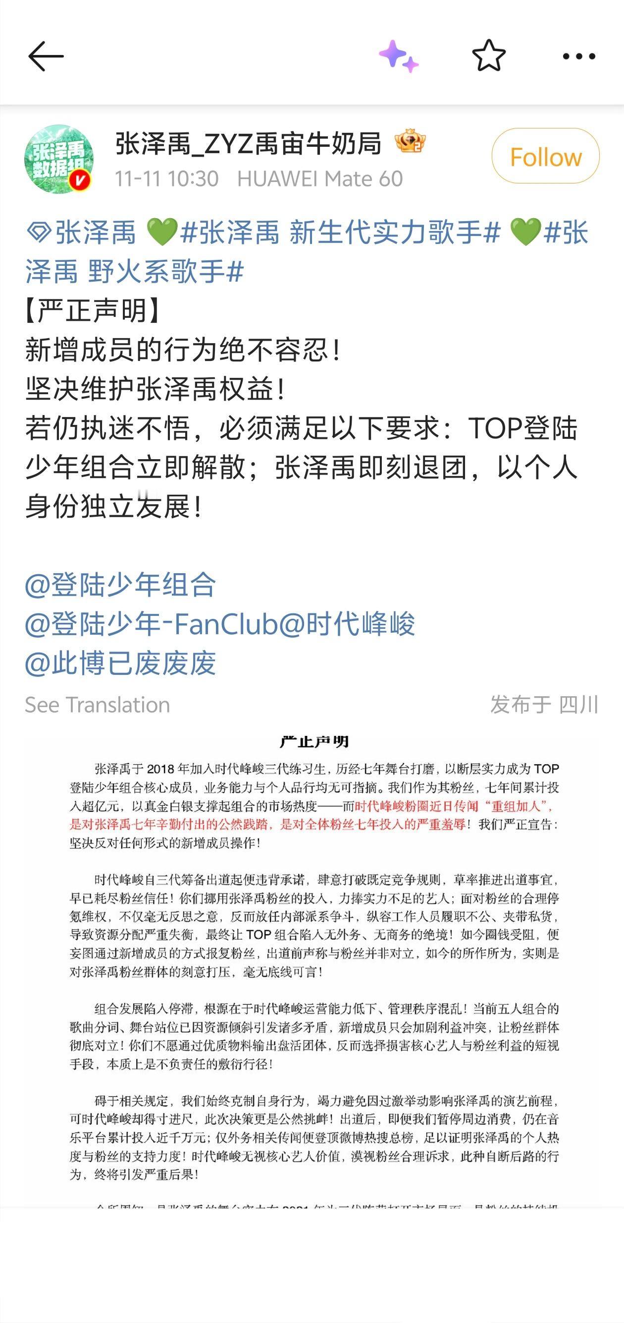 穆祉丞 TOP 张泽禹数据组严正声明,拒绝TOP加人。
