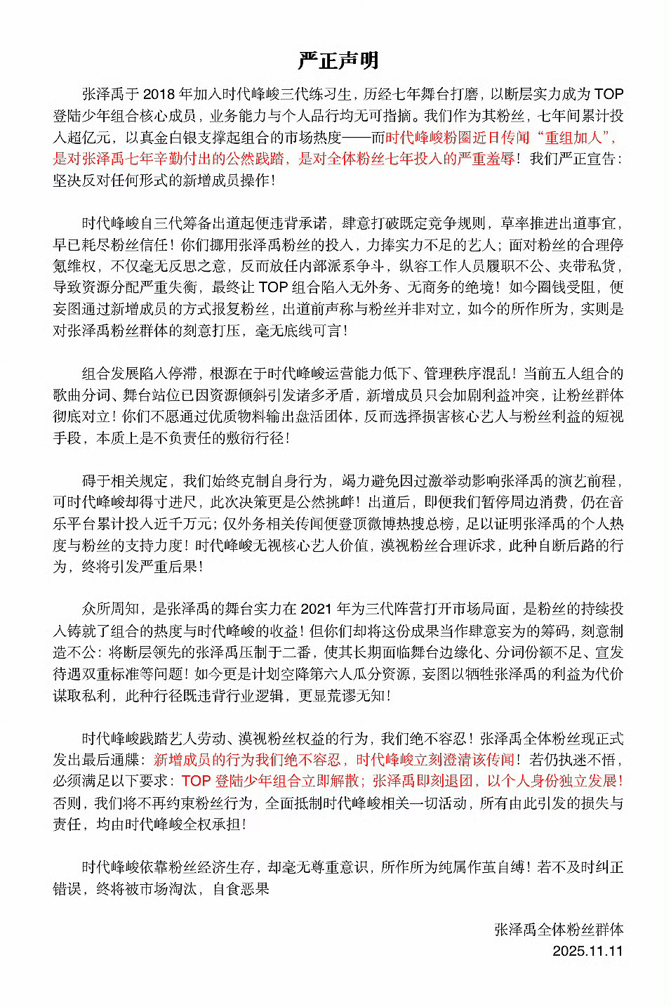 穆祉丞TOP张泽禹数据组严正声明,拒绝TOP加人。