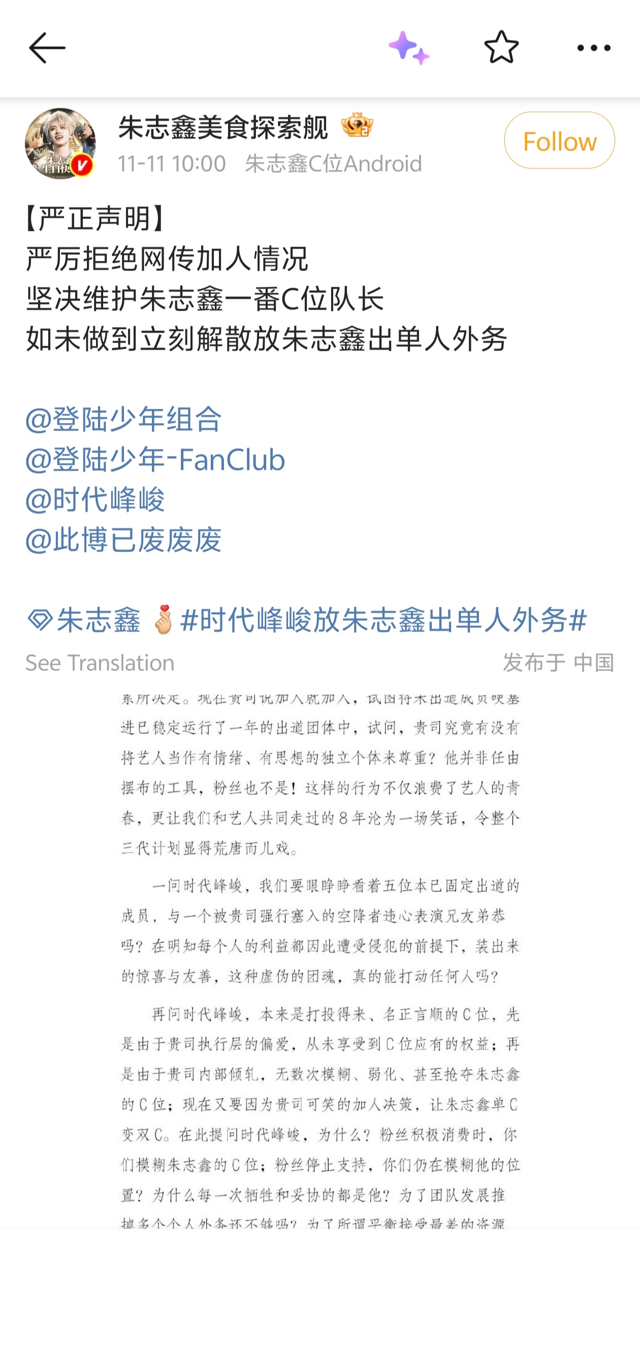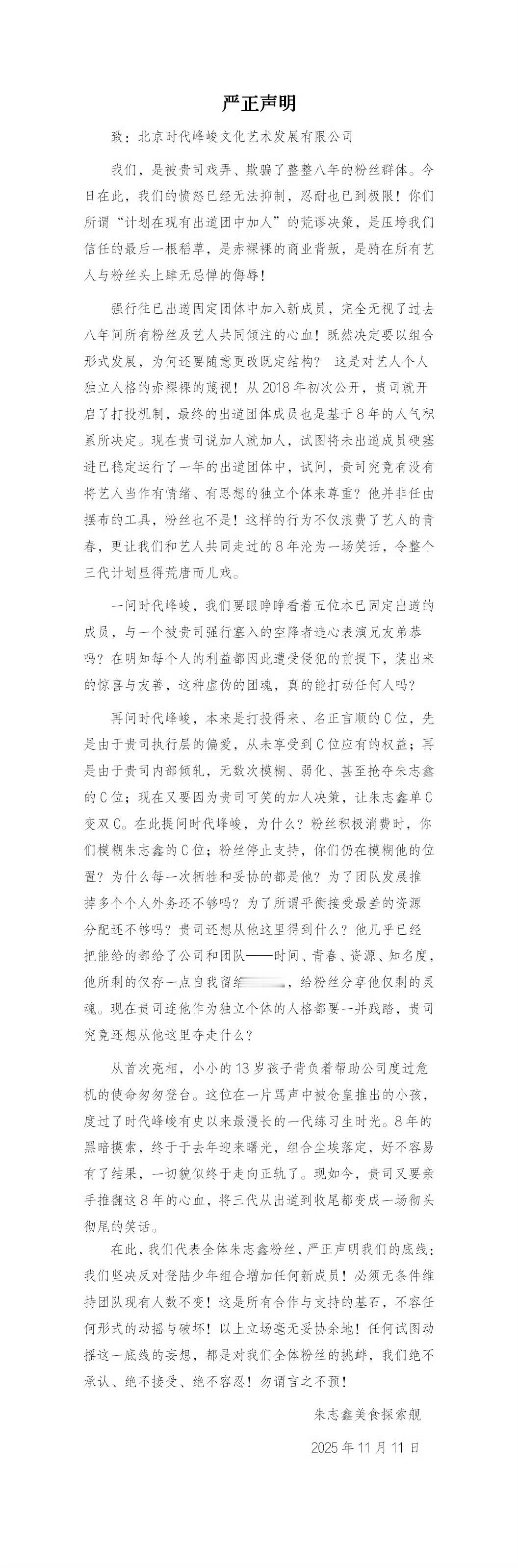 穆祉丞 TOP 朱志鑫数据组严正声明,严厉拒绝网传加入情况。