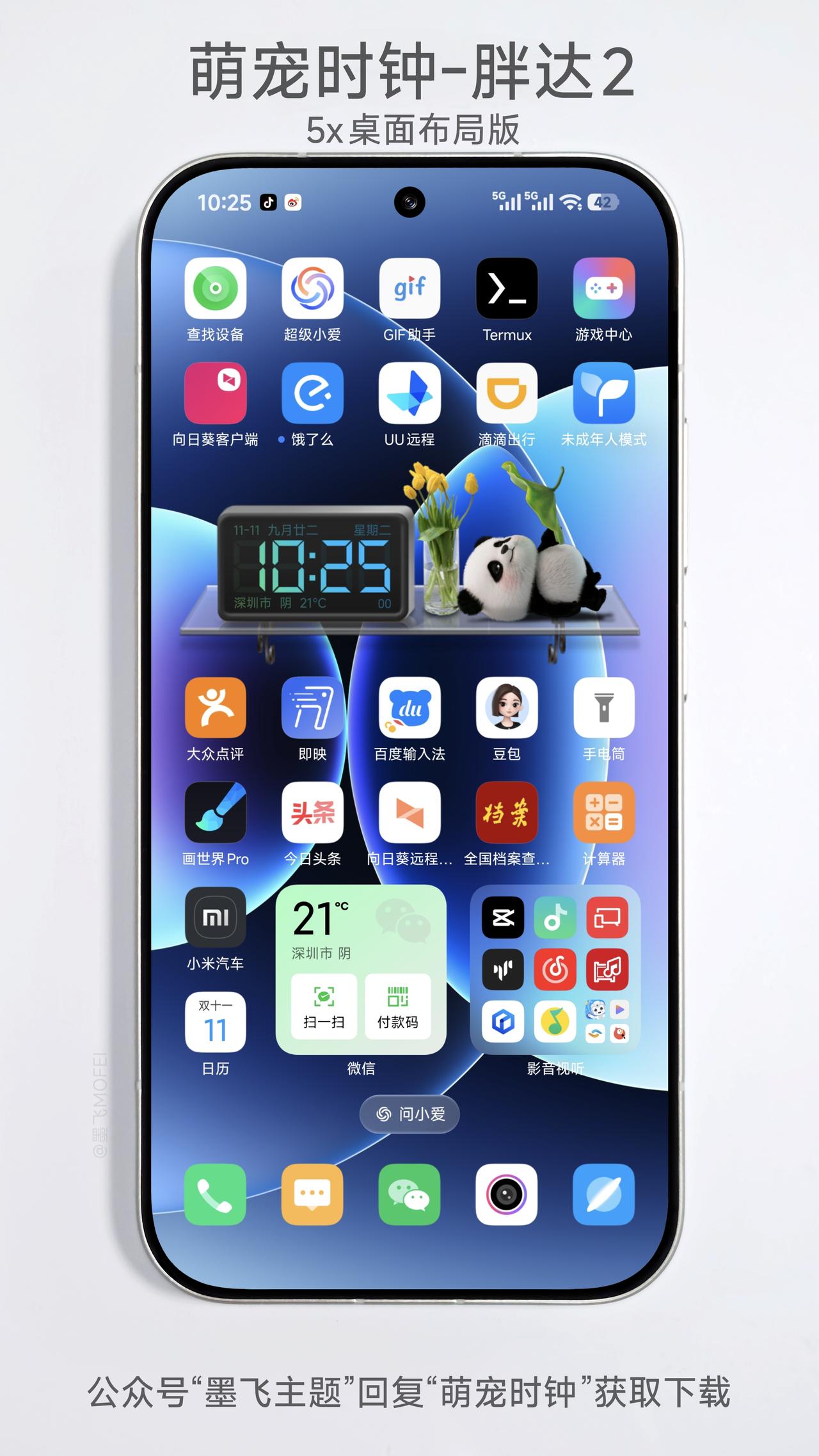 萌宠时钟-胖达2新增一款5x桌面大布局版本! 调整花瓶高度、调整萌宠大小及高度,给5x桌面布局用户使用。如图1 之前基于4x6桌面布局做的萌宠时钟-胖达2,在5x大布局桌面使用会显示不全,如图2 4x小布局桌面用户可以用普通版本,忽略此版本。 时钟插件 桌面小部件