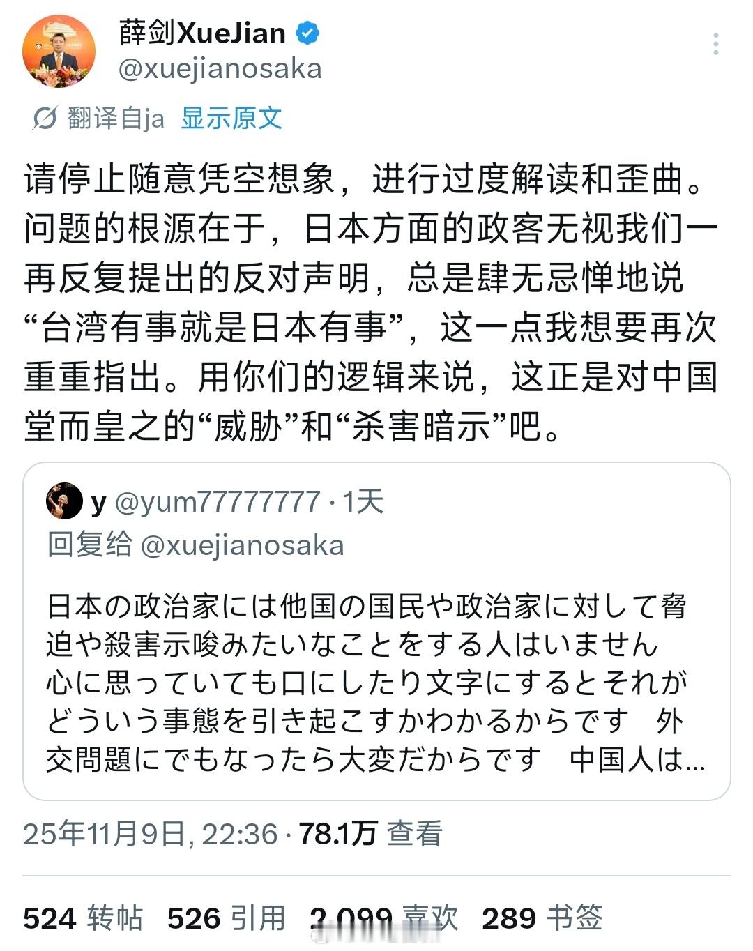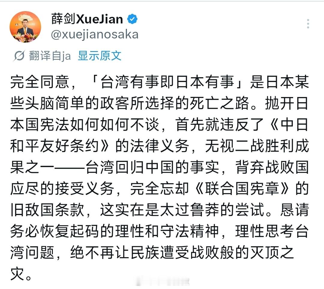 ⭐好邻居就该被别人妄言自家内政吗?薛剑总领事用言语驳斥高市早苗“台湾有事就是日本有事”这种谬论有问题嘛?
