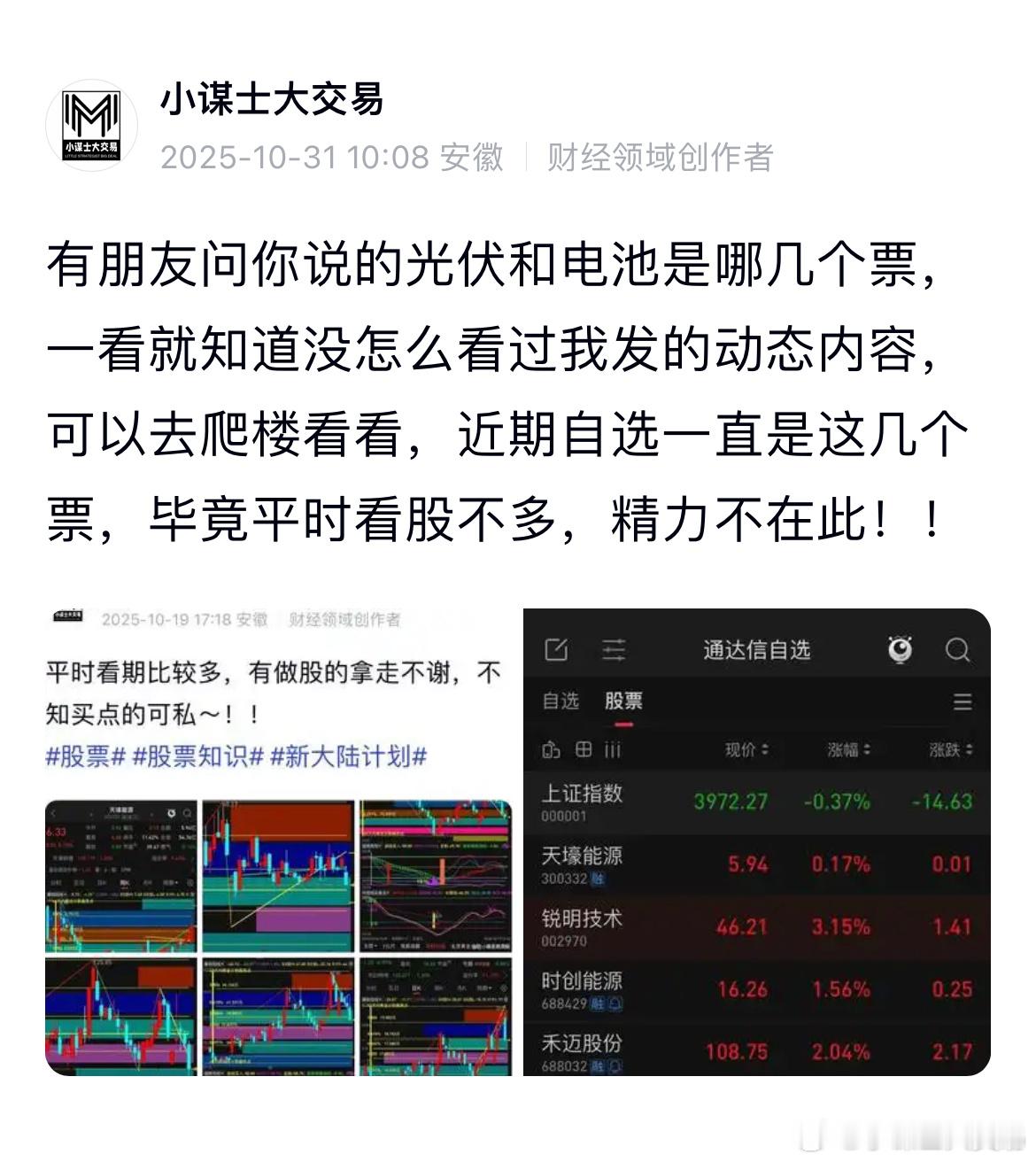 平时经常看我动态的朋友应该知道我虽股期都看,看主要精力还是放在期市,股市偶尔有朋友需要也会帮忙看一看,前段时间给了一些票,敢做敢拿的朋友应该已经拿到了结果,做股的朋友如有需要我依然可以帮忙看看,或给一些我觉得值得跟进的一些票。
