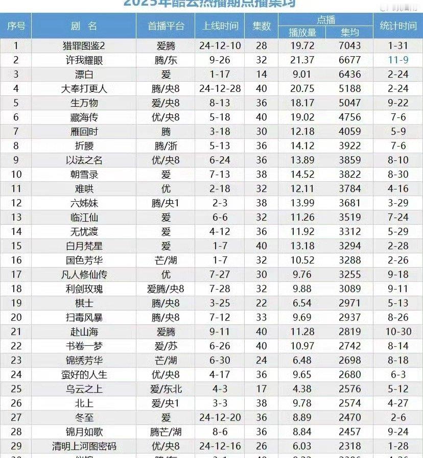 檀健次的猎罪图鉴2,依旧是25年酷云热播期点播集均冠军,集均7043万。