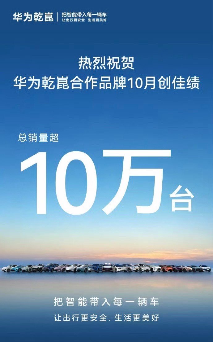 华为乾崑有点东西!华为乾崑合作品牌10月总销量超过10万台,满满当当的车辆,看的