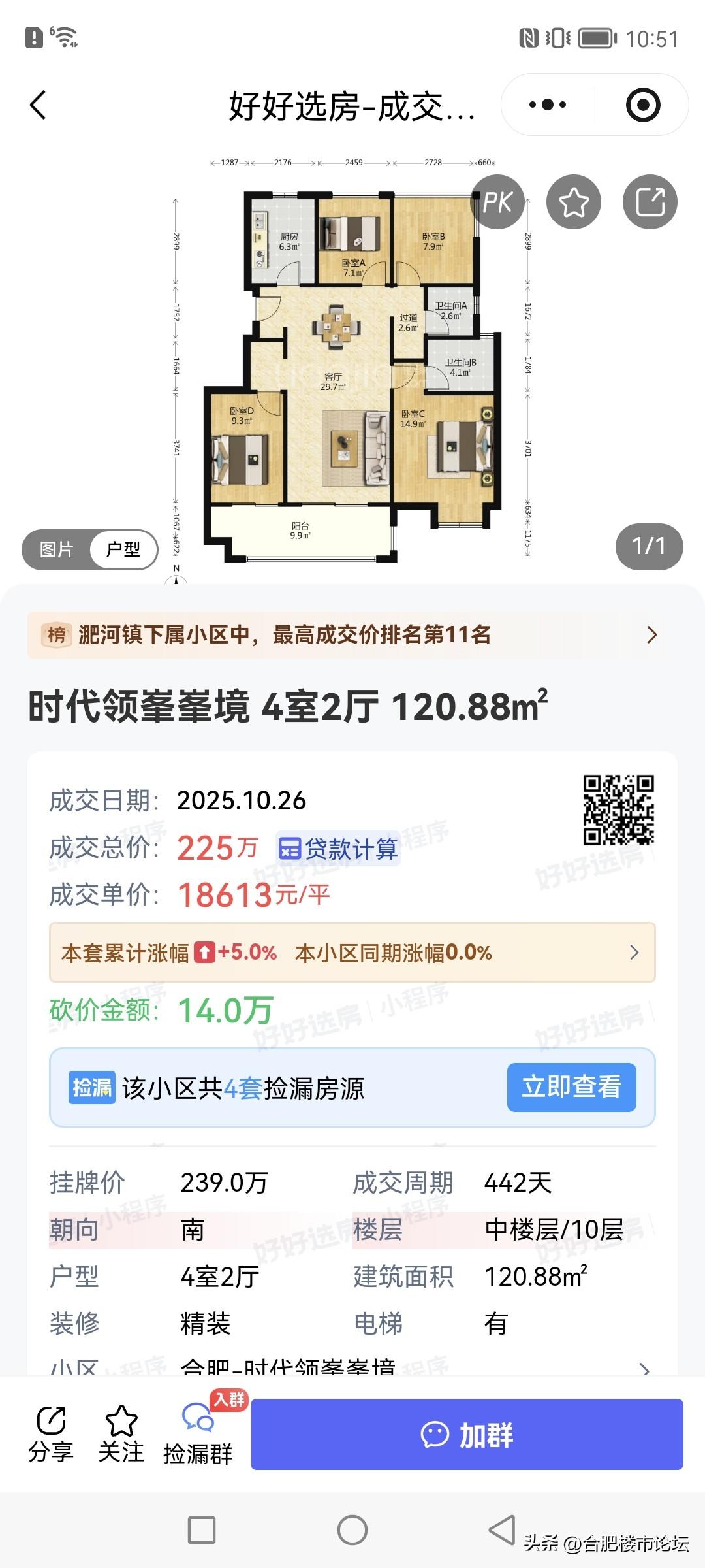 改善买家不买新房,其实能买的二手房也是非常多。还都是所见即所得的。不是看图的。 淝河的万科翡翠天际小高层单价一万六。时代领峰洋房中间楼层,单价一万八。包河的置地瑞玺洋房中间楼层单价两万一。庐阳的国贸天成,毛坯大高,单价还能两万一千多。