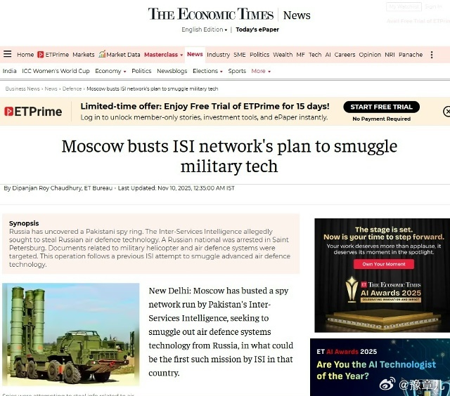 俄罗斯发现了一个与巴基斯坦三军情报局有关的间谍网络,该网络试图获得有关防空系统和武装直升机的技术文件。
