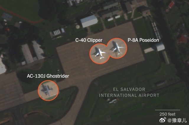 美国的P-8A波塞冬、C-40快船和AC-130J幽灵骑士在萨尔瓦多国