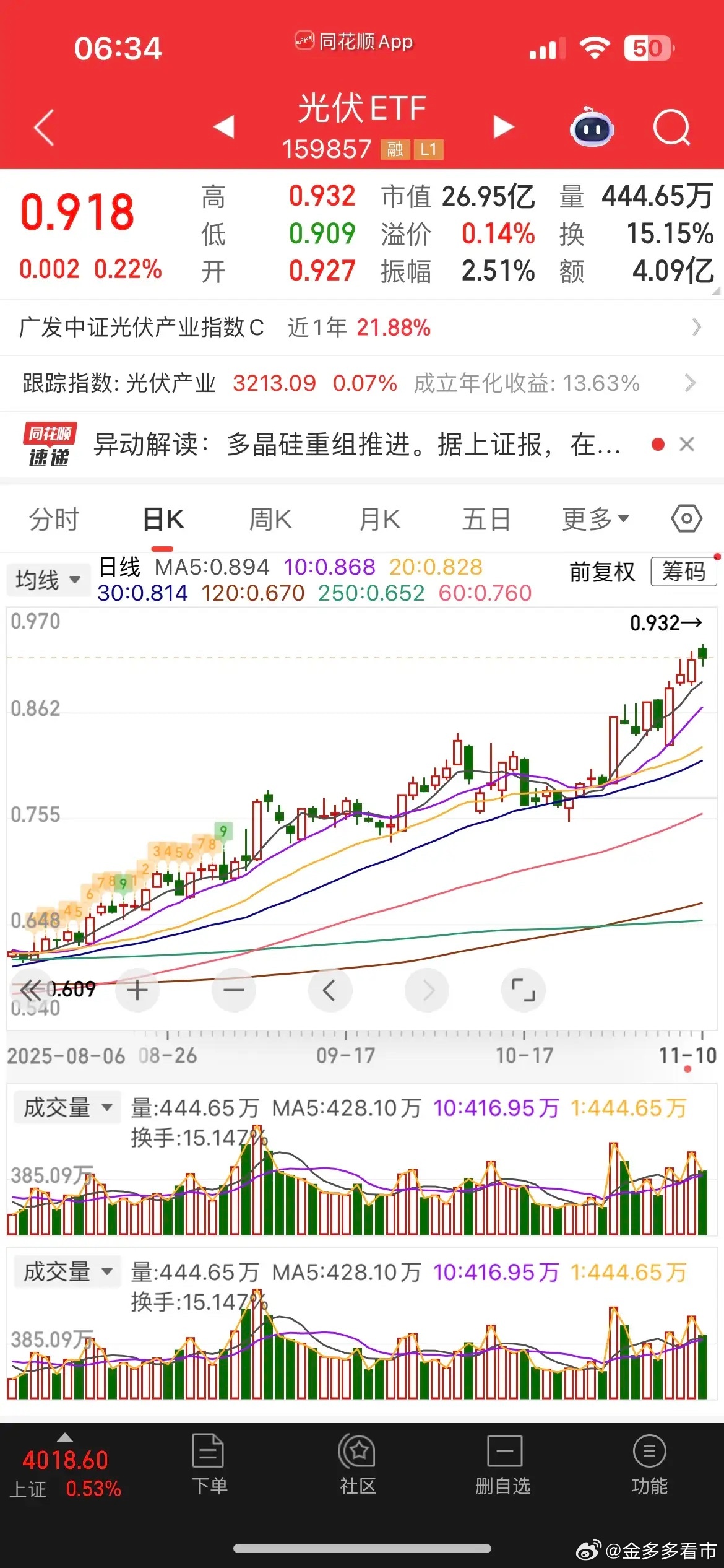 一觉醒来,黄金暴涨,欧美股市全线大涨,纳指金龙指数大涨超2%,小鹏汽车暴涨超16%,百度大涨5%,京东、哔哩跌近1%,拼多多涨近2%,阿特斯太阳能暴涨近14%,大全新能源大涨超6%,富时A50变化不大,恒生主连跌0.19%,这样看今天我们大A有望再度冲击前高4025点,关键还得看增量,不然又冲高回落。