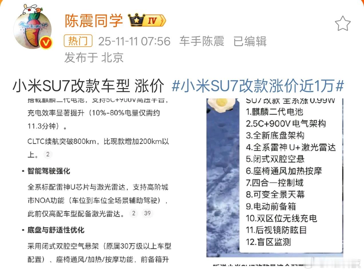 小米SU7上改款车型的话也挺好[嘻嘻]老款订车购置税减半补贴,新款就不免购置税,这样可以形成平衡[柯基]总不能新款配置全面加强还免一半购置税吧,那就厉害了小米SU7改款涨价近1万