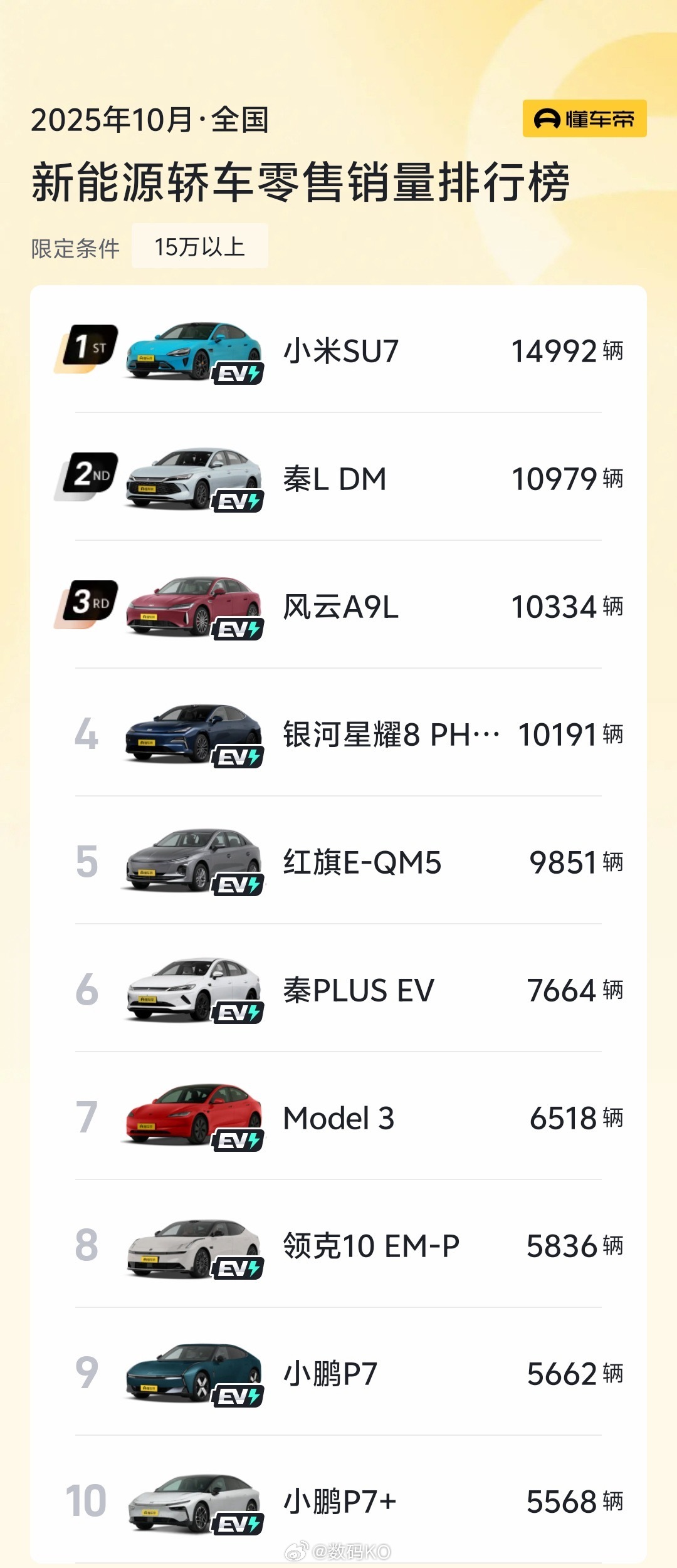 这就是小米YU7仅两万的含金量吗?等一款车上市 这榜单更好看。