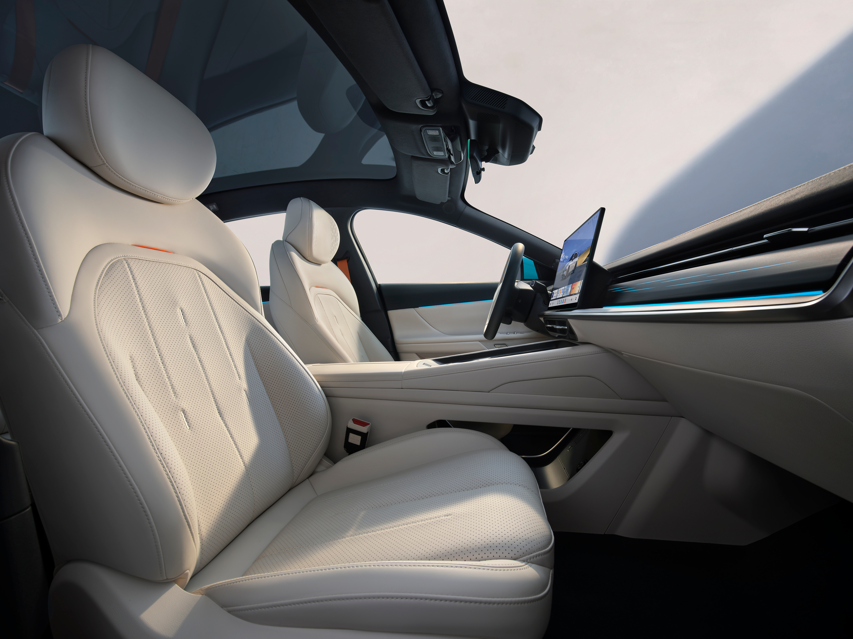 首先颜值直接戳中我的审美——大溜背+无框车门,随速升降电动尾翼一抬,仪式感拉满;星光棱镜LED大灯灵动又夺目,大热的港湾蓝、苍穹灰预售期间还免费送。