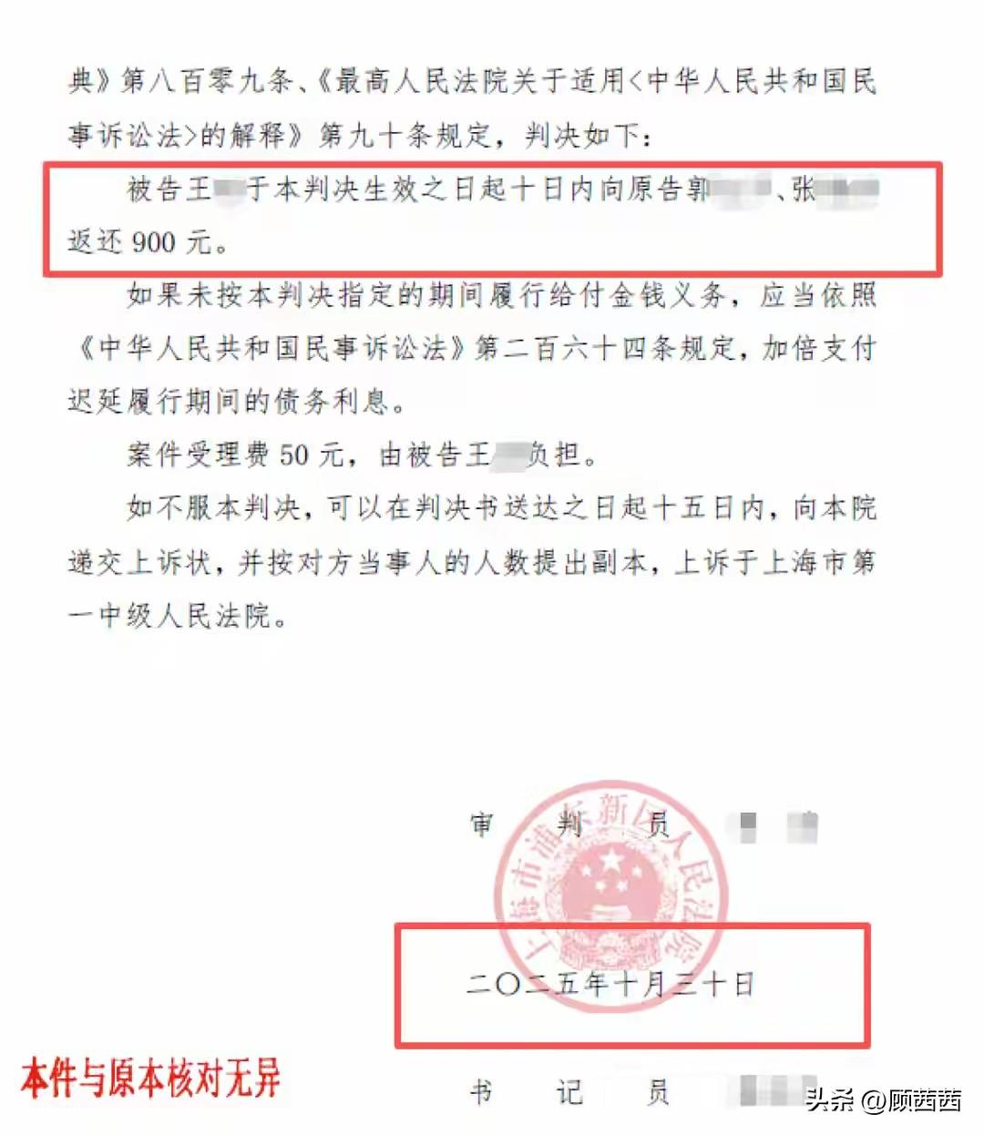 19岁男孩错转900元车费没要回,竟选择自杀!这事儿现在终于有了新结果! 今年3月,河南鹤壁的小郭去上海投奔堂弟,坐网约车时和司机约定车费110元,结果扫码时不小心转了1010元。等发现多付了900元,小郭赶紧给司机发微信要退款,可对方一直没回应,后来他还跑到派出所求助,可钱始终没要回来。没几天,家人就接到了噩耗,小郭在苏州穹窿山喝农药自尽了,一个年轻的生命就这么没了。 小郭家人又气又痛,后来起诉了这名司机。11月10号,他们拿到了法院的一审判决书,法院认定司机说的“套现”没证据,判决十日内返还900元。可小郭的哥哥说,比起这900块,他们更想要一句道歉,为了这事往返上海多次,花费早就超了900元。直到现在,家人还没收到退款,也没等来司机的一句对不起。