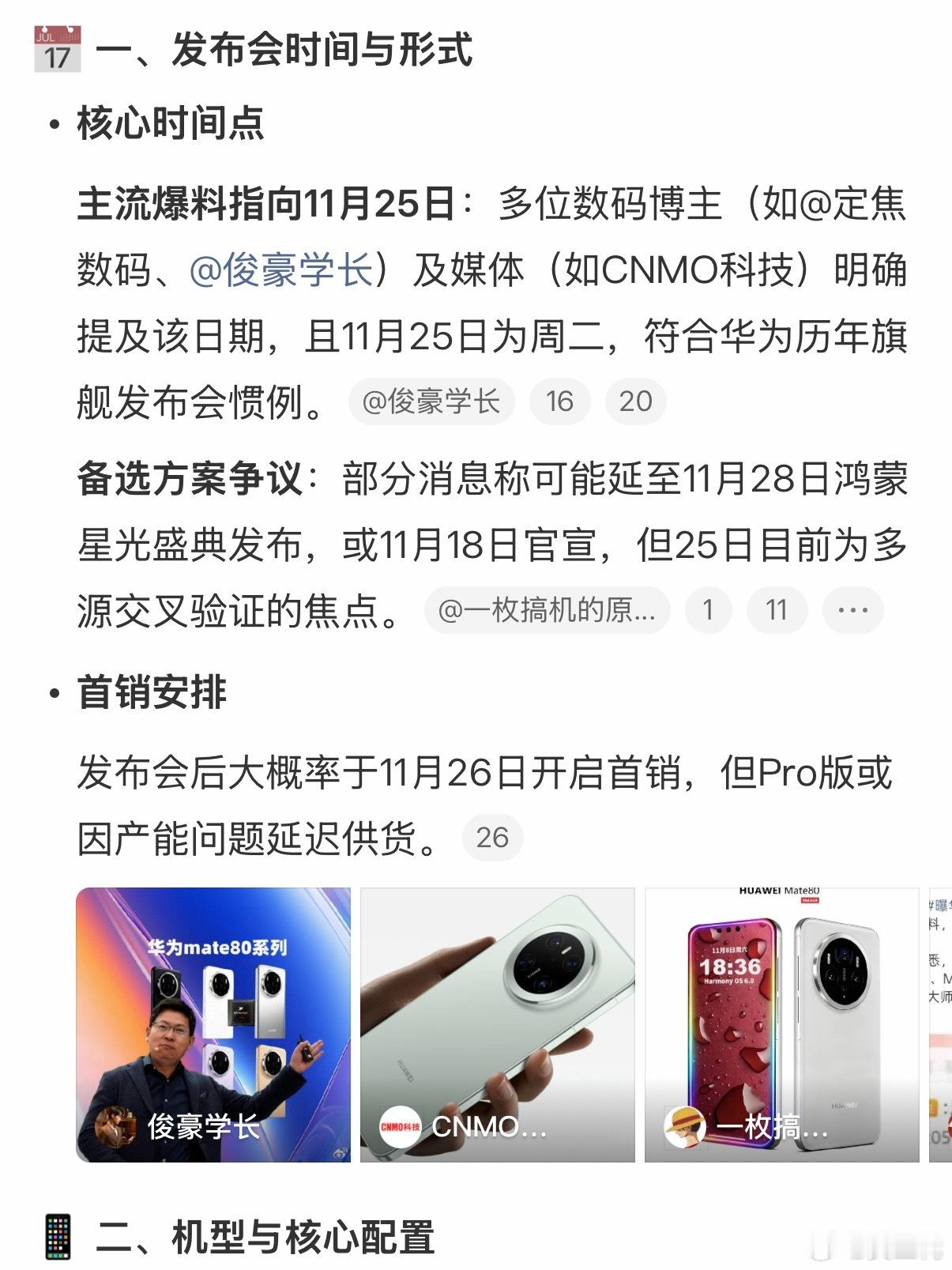 曝华为Mate80定档11月25日反正不管多少号发布,肯定都是本月了。华为Mate 80系列,感觉余总还是开手机发布会的时候最有激情[柯基]