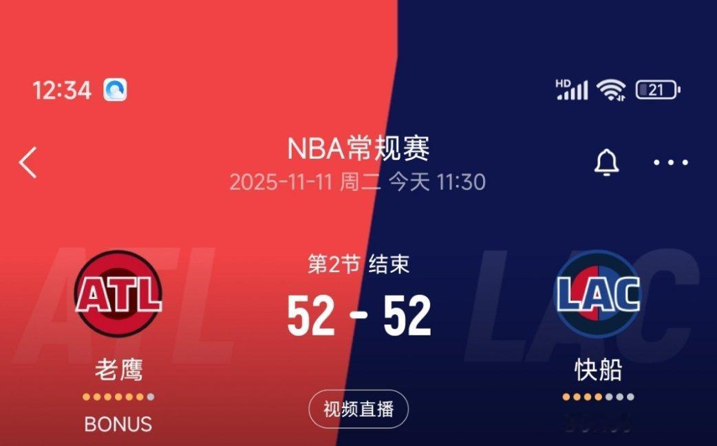 上半场结束,双方打平!!哈登半场10分8篮板5助攻!快船vs老鹰