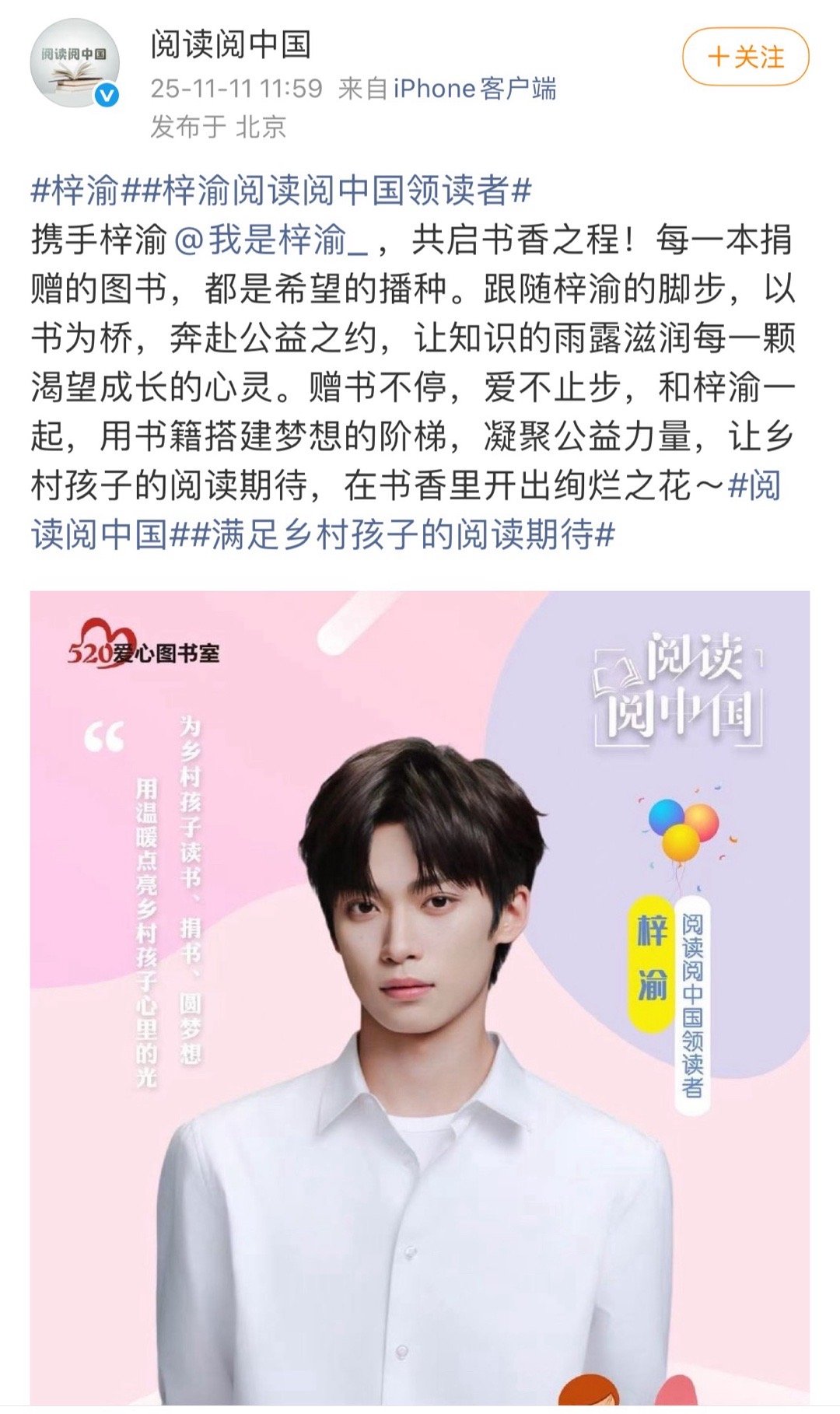 梓渝这边在用心做公益,成立了520小鱼爱心图书室,为孩子们读书,捐书,圆梦想,这点真的好👍🏻