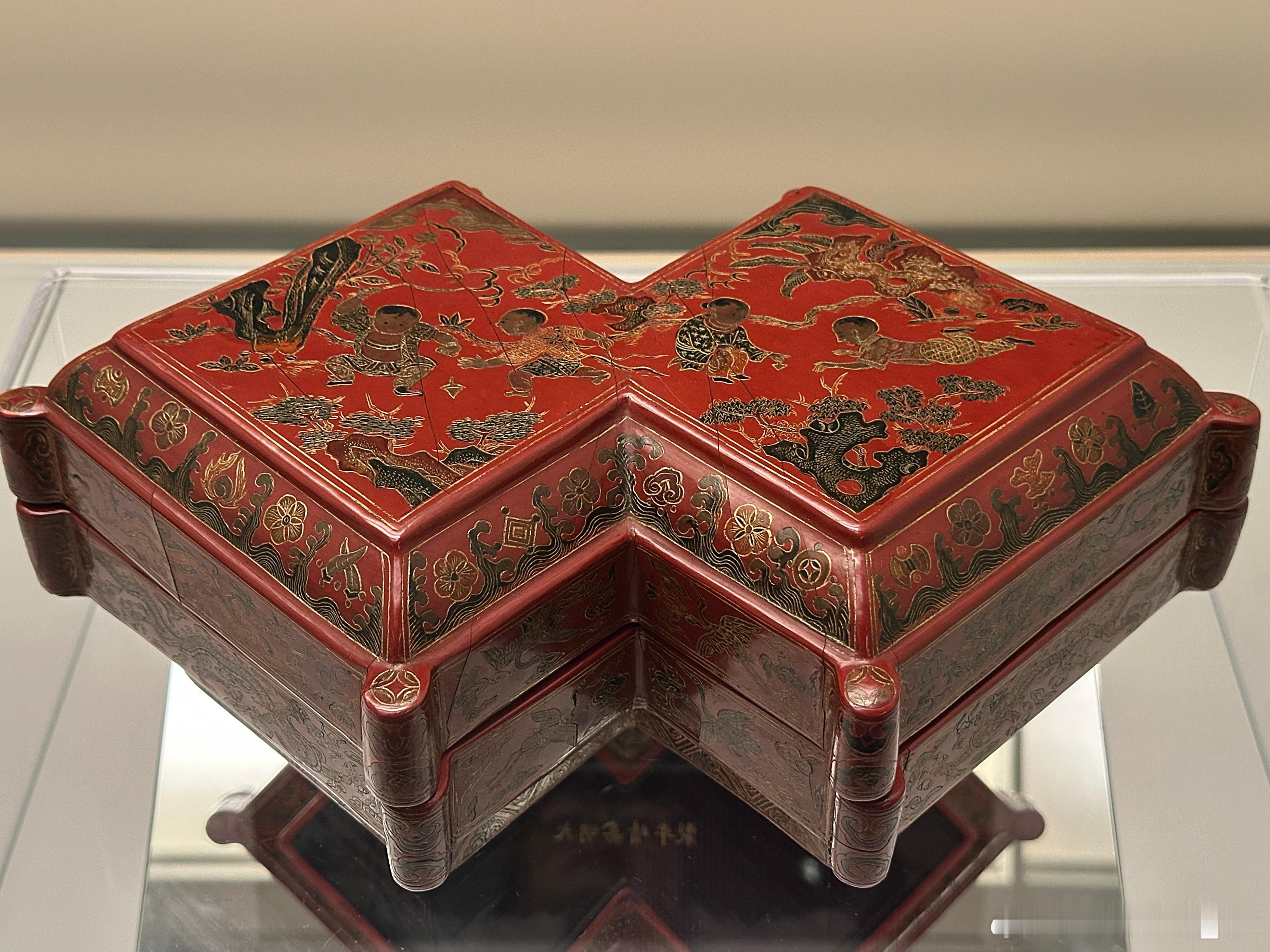 戗金彩绘婴戏图方胜形盒