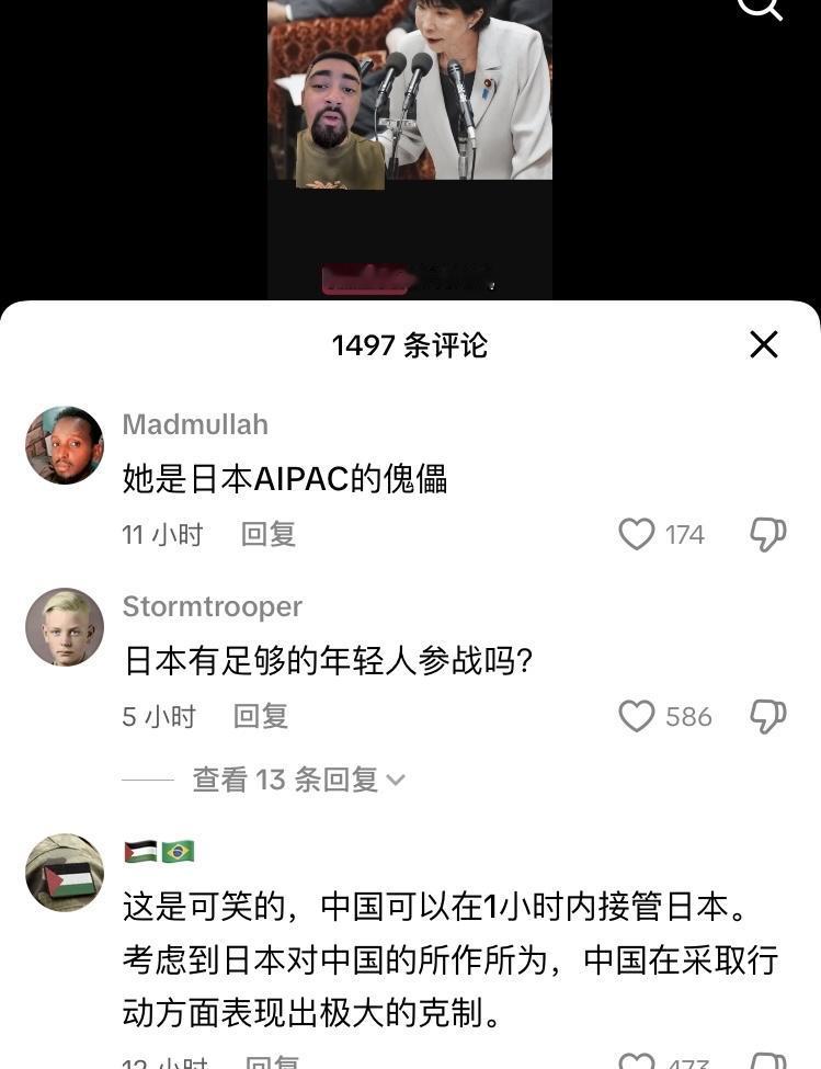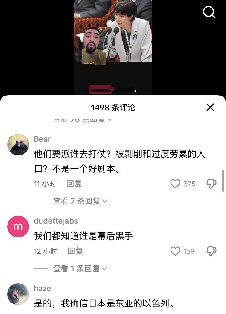 日本首相高市宣战中国遭到海外网友嘲笑 日本有足够的年轻人参战吗? 她是日本AIPAC的傀儡 日本是东亚以色列 他们要派被剥削和过度劳累的人去打仗? …… 美国都不敢说出口的话,小日子倒是有够狂妄的。希望最后不要退缩屁滚尿流地逃跑