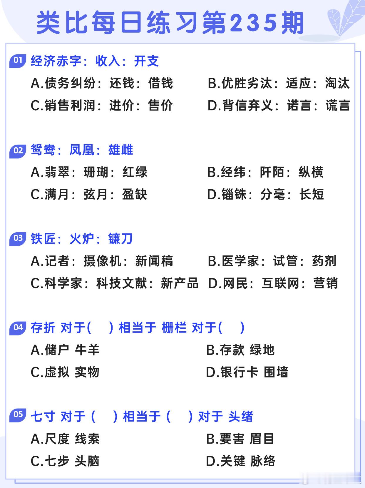 图推类比每日练习第235期图推难度:☆☆类比难度:☆☆开学元气加油站决战公考省考
