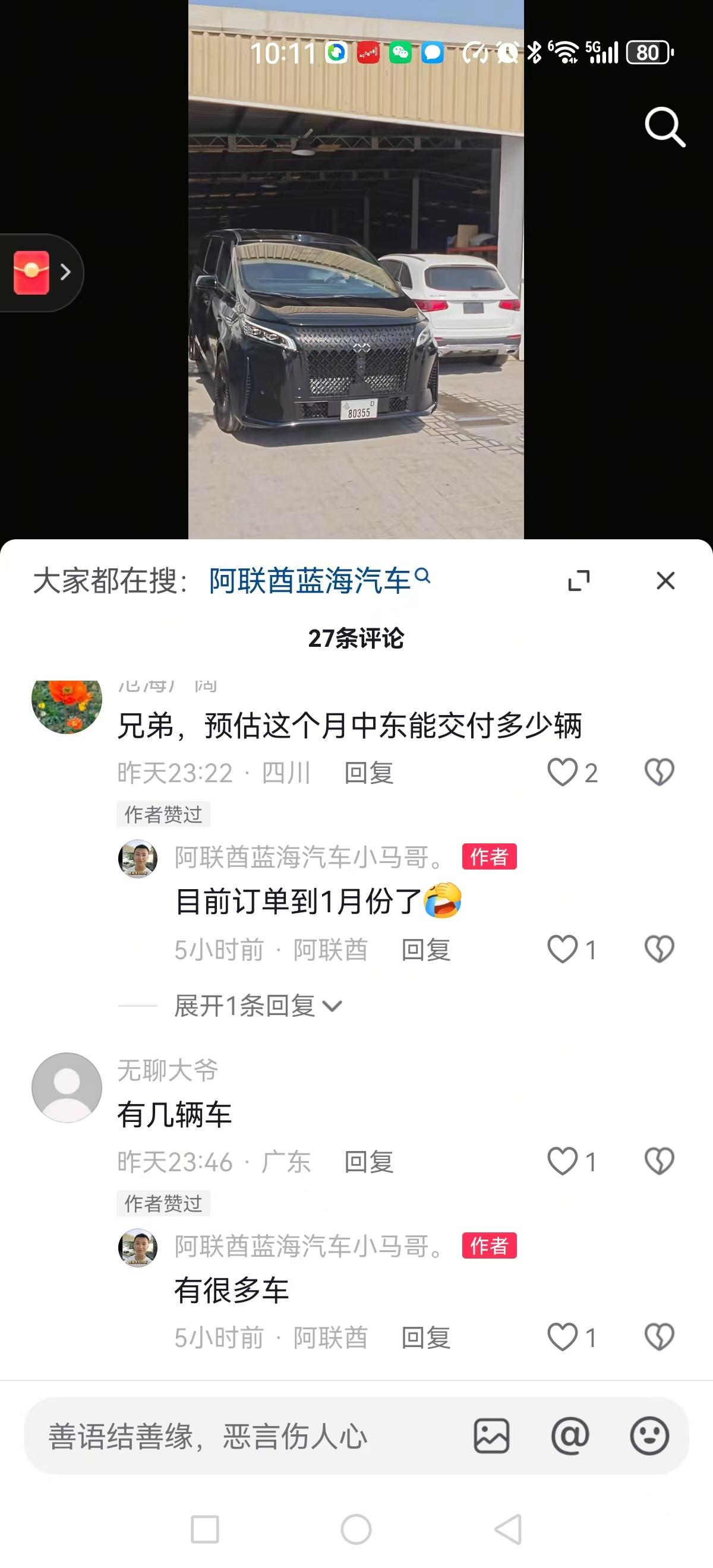 据内部消息,贾跃亭在中东的Super One,不是在中东组装的,而是在国内组装好,整车运到中东的! 今天在群里看到消息,已经有车抵达了中东经销商那里,据说订单火爆,现在订要到1月份才能提车。 在国内,这车已经排到同类车首位,中东作为美国市场的试金石,如果大卖,那在美国热卖的概率会大一些。 如果第一款车热卖,那就证明贾跃亭的中美桥梁是可行的!国内30万的车,在国外卖到60万,价格翻了一倍。试问哪家车企不想呢?估计贾跃亭的门前会由门前冷落,再次的热闹起来!那贾总的下周回国,就不会太远了,你说呢?