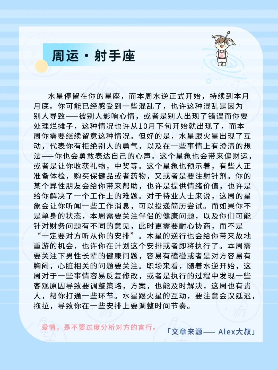 本周,水星跟火星也会再次互动,上次出现这个星象是在10月份,那时候我就提到过,这个星象非常容易出现擦枪走火的沟通,容易带来争吵,而此时水逆发生,跟火星出现这种情况,你需要回顾——10月上旬到中旬期间,是不是跟某个人吵过架,闹过不愉快,那么这周就需要注意,可能再次跟这个人,或者这个类型的人出现矛盾,又或者是跟其他人出现当时同类性质的矛盾。