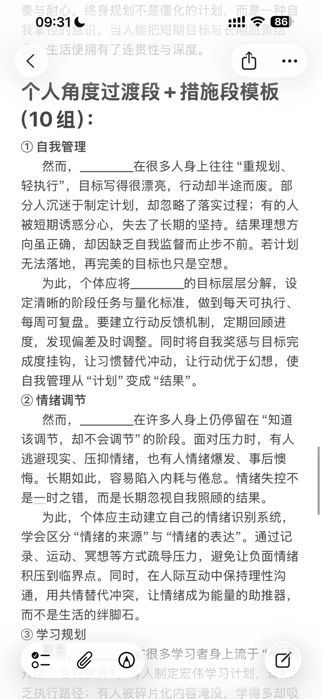 继上次的企业角度模板后,经过连续几天的整理给大家带来了第二部分:个人角度的模板整理。虽然我们管理类联考主旋律一定是企业角度,但是由于24、25年两年史无前例的连续两次考了毫无争议的个人角度话题,因此准备的优先级考虑,个人模版应该排在第二位,也值得好好准备!