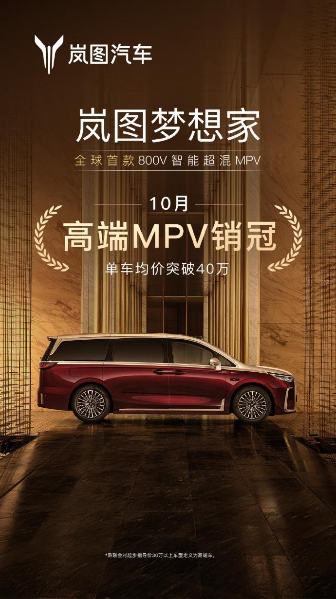岚图梦想家以 10 月 6632 辆销量蝉联高端 MPV 销冠,累计交付超 15 万辆,用实力改写合资主导的市场格局。作为全球首款 800V 智能超混 MPV,其 350km 纯电续航与 12 分钟超快充技术,彻底破解补能焦虑,华为乾崑智驾 ADS 4 与鸿蒙座舱则实现全场景智能守护。魔毯空气悬架与后轮转向技术,让 5.3 米车身兼具豪华舒适与灵活操控,“座座皆 VIP” 的座舱设计完美适配商务与家庭需求。 单车均价突破 40 万,55% 用户来自 BBA 增换购,乾崑 Ultra 版订单占比超 50%,彰显高净值群体认可。从达沃斯论坛到多国驻华使馆用车,岚图梦想家以 2000MPa 超高强度车身与五星安全认证筑牢底线,更以技术断代优势,引领中国高端 MPV 从 “品牌溢价” 迈向 “技术价值” 的全新时代。2026款岚图梦想家