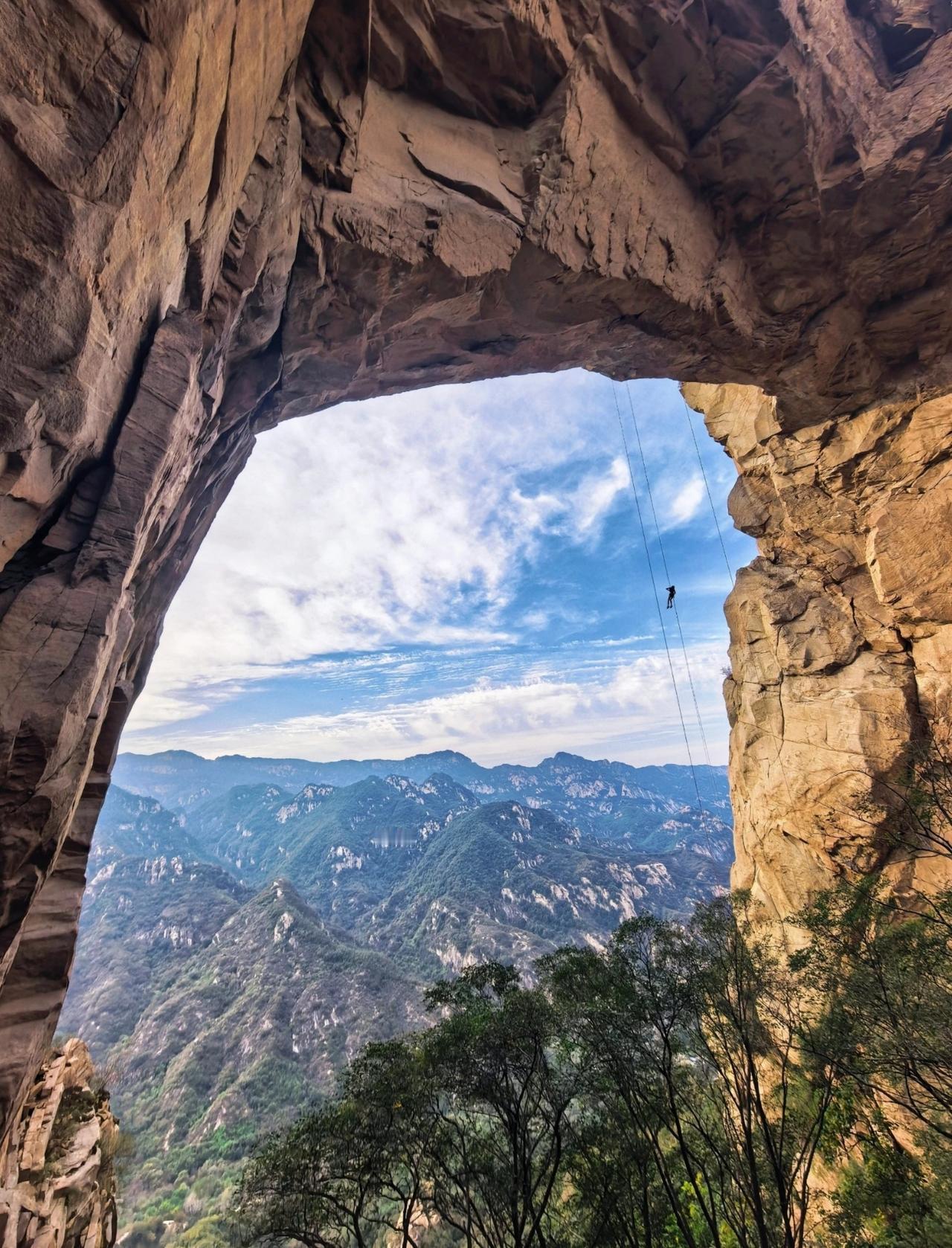 被严重低估的宝藏地——密云天门山!这里不是湖南,却同样有令人惊叹的天然景致。 👉一进景区,就被清澈见底的溪水治愈了!水流潺潺,阳光洒下来,水面泛着粼粼波光。小朋友在水边玩得不亦乐乎。 👉主角当然是那个穿透山体的天然石窟——天门洞!需要一点体力攀爬,但当站在洞口,山风吹过,俯瞰整个密云水库和连绵群山时,一切都值了!“会当凌绝顶”的豪迈感瞬间拉满! 👉相比那些人挤人的热门景点,这里简直是一股清流。可以安静地听风、看水、赏景,独享一份山野间的宁静,体验感满分。📍 地址:北京市密云区石城镇天门山风景区 🎫 门票:30r/人(京津冀卡免费) 🚗自驾:导航“密云天门山风景区”,景区有专门停车场(10r/辆) @点小野
