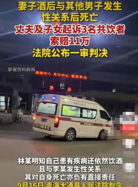 “自作孽不可活!”妻子酒后和情人发生关系后死亡,丈夫不满9万补偿,向共饮者索赔剩