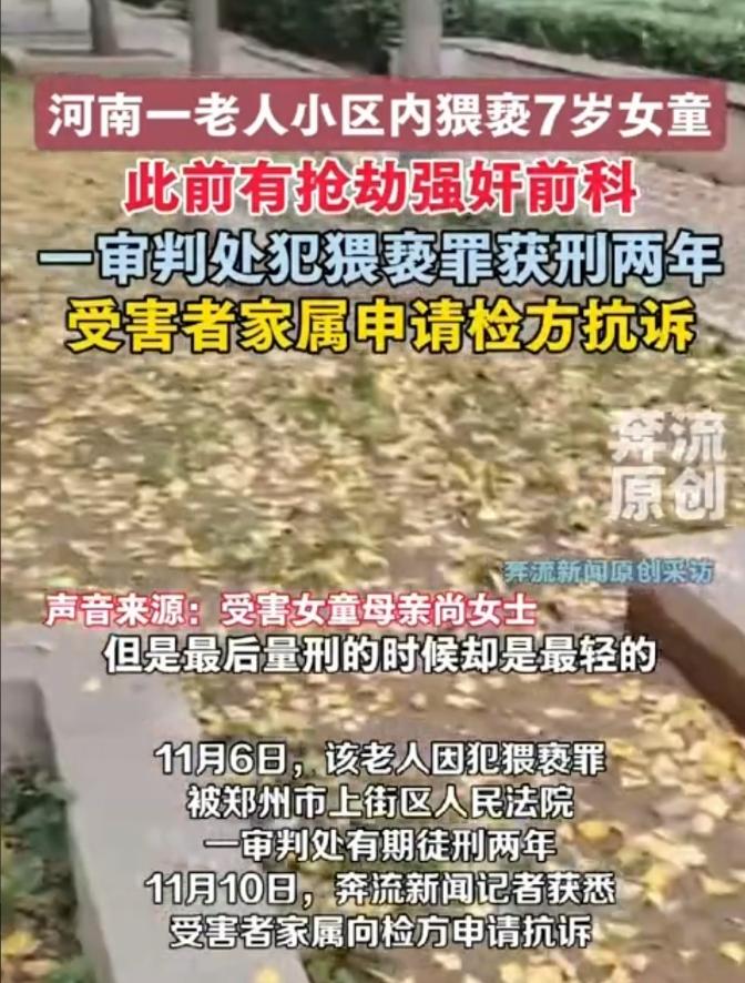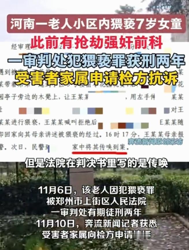 7岁女童在小区玩耍时,被60岁同小区的老人哄骗到小区花园,在公共场所,当众将手伸入女童的衣服内,实施了猥亵。女童反抗后逃离,女童母亲报警,老人被抓获归案。女童家属提起附带民事诉讼,索赔35万,然而,法院判决,令家属大失所望。   2025年2月4日下午。一个名叫殷某的60岁老人,却将罪恶的目光投向了正在玩耍的7岁女童。   他用哄骗的手段,将不谙世事的女童带到了小区花园的僻静处。这里虽是公共场所,光天化日之下,罪恶却肆无忌惮地发生。   殷某当众将手伸入女童的衣服内,实施了猥亵。女孩的哭喊与反抗,是她逃离魔爪的唯一武器。   逃回家中的女童,向母亲哭诉了一切。尚女士当即报警,法网随即撒下。次日,也就是2月5日,犯罪嫌疑人殷某到案。   然而,一个细节的分歧,却为日后的争议埋下了伏笔。家属坚称是“抓获归案”,但判决书上却写着“家中传唤到案”。   这个看似微小的措辞差异,在司法实践中可能影响着对被告人到案方式的认定,进而牵动着量刑的考量。   11月10日,郑州市上街区人民法院的判决书终于公布。刑事部分,被告人殷某因犯猥亵儿童罪,被判处有期徒刑2年。   民事部分,女童家属提起的35万元附带民事索赔,被法院以“未提交相关证据且缺乏法律依据”为由,全部驳回。   这个结果,如同一盆冰水,浇在了尚女士和所有关注此事的人们心头。   两年刑期,对于一个有着累累前科的罪犯,在一个7岁女孩心中投下的巨大阴影而言,显得如此苍白无力。   人们不禁要问,法律对儿童的保护,难道就止步于此吗?   法院的判决并非毫无依据。判决书明确认定了多项从重情节。殷某系有前科人员,并且是在公共场所当众猥亵不满12周岁的儿童。   庭审中,他还避重就轻,未能如实供述自己的罪行。这些都构成了从重处罚的理由。   然而,一个关键的法律适用问题,却让“从重”的力度大打折扣。   根据我国《刑法》第237条的规定,在公共场所当众猥亵儿童的,属于加重情节,法定刑应为五年以上有期徒刑。   这正是家属和公众预期的量刑区间。   但法律的另一条规定,似乎为殷某打开了一扇“后门”。殷某的前科,要追溯到2012年,他因犯抢劫罪、强奸罪被判刑,2016年才刑满释放。   根据《刑法》第65条,刑满释放后五年内再犯应当判处有期徒刑以上刑罚之罪的,才构成“累犯”,才属于“应当从重”处罚的法定情节。   殷某的再犯时间,恰恰超过了五年的追溯期。这意味着,他的前科无法被认定为法定的“累犯”情节,只能作为法官裁量时的酌定从重情节。   更让家属难以接受的,是民事赔偿的全面落空。法院的理由是家属未能提供直接的物质损失证据,比如医疗费、心理治疗费用的票据。   这在法律程序上或许无可指摘,却暴露了一个巨大的现实困境。   对于一个7岁的孩子而言,身体的伤害或许可以愈合,但心理的创伤如何量化?那份深入骨髓的恐惧与羞耻,又该用怎样的票据来证明?   这不仅仅是尚女士一家的困境,更是所有类似案件中,被害人家庭共同面临的难题。   法律对“损害”的认定,似乎更多地停留在了物质层面。   有法律专家分析,法院之所以未适用五年以上的刑格,可能还考虑到猥亵手段本身。   或许在司法实践中,法官认为殷某的行为虽属恶劣,但尚未达到司法解释中规定的“其他严重后果”或“手段特别恶劣”的程度,例如侵入式猥亵等。   这种专业判断,与公众朴素的正义观之间,形成了巨大的鸿沟。   在民众看来,对一个7岁女童下手,本身就是最恶劣的情节。这种认知上的错位,正是点燃舆论怒火的根本原因。   事实上,为了应对这类犯罪,我国的司法系统一直在努力。   就在2025年6月,最高人民检察院发布的指导性案例中,就明确强调了对猥亵儿童犯罪需从严惩处。   该案例指出,“公共场所当众猥亵”的认定,并不需要真的有很多人实际目睹,只要行为发生在开放环境,具备被他人感知的可能性,就足以构成。   此外,早在2023年施行的相关司法解释也规定,若猥亵行为对儿童造成了心理创伤等“其他严重后果”,同样可以升格量刑。   但前提是,这种心理创伤需要有专业的临床诊断证明。   这再次回到了证据问题上,如果家属未能及时进行并提交权威的心理评估报告,法官便难以在法律框架内支持更重的量刑。   公众的期待,显然是法律能展现出对这种毫无悔改的惯犯更强的震慑力。   如今,战斗还未结束。截至2025年11月11日,尚女士已经就刑事判决部分,向检察机关正式申请抗诉。   同时,她也对被驳回的民事赔偿部分,提起了上诉。她要为女儿讨一个公道,也要为所有潜在的受害者,敲响法律的警钟。