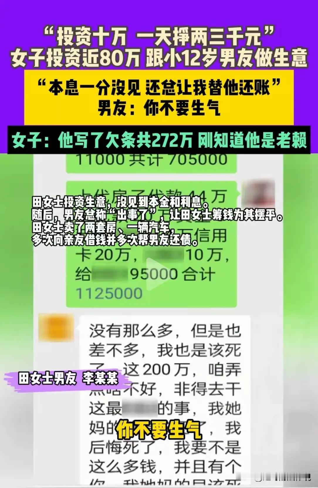 在河南巩义的一个普通小镇上,有一位身家数百万的离异女子,她曾以为自己的人生已走到尽头,却意外遇到了一段让人心碎的爱情故事。这是一场关于信任与背叛、希望与绝望的修行,也是一堂关于健康与幸福的深刻课。 她曾以为,离婚后的孤独与痛苦已随风而去,直到遇见那个比她小12岁的男子。这个年轻人带着笑容,似乎懂得她所有的心事,渐渐走进她的生活。短短几天,他便说自己有一份稳赚不赔的投资,能帮她实现财务自由。女子心动了,抱着一线希望投了十几万,竟在短短一天内赚了两三千。这让她信心大增,投入了80多万。 然而,好景不长,奇迹似乎变成了噩梦。起初,她还能拿回五六万,但之后,一分钱也没有了。男友声称自己出了事,急需用钱帮他“摆平”,否则她辛苦攒下的全部积蓄都将付诸东流。女子心急如焚,变卖家产,借遍亲友,硬是借出190多万,只换来一张借条。更荒诞的是,他还告诉她爷爷的坟头埋藏着200万现金,只是暂时不能动,等取出来就能还她。 但当她租房吃饭都成了问题,终于忍无可忍报警求助。民警的调查揭露了真相:一切都是骗局!那所谓的“投资”不过是圈套,所谓的“坟头埋钱”更是荒诞的谎言。女子顿时崩溃,心如刀绞。她用尽所有的积蓄,换来的却是无尽的痛苦与失望。 这场悲剧告诉我们,人生如修行,身心双调才是真正的幸福。健康,不只是身体的无恙,更是心灵的平静。我们要学会用感恩的心去看待生活的每一次磨难,用智慧去辨别身边的虚假繁华。人生的道路上,莫让贪欲蒙蔽了双眼,更不要被虚假的“美好”所迷惑。 每个人都应铭记:幸福不是外在的金钱堆砌,而是内心的充实与安宁。面对诱惑,要保持理智,坚守初心。让我们以这位女子的故事为戒,珍惜当下,善待自己,用一颗感恩的心,走好人生的每一步。只有身心健康,才能迎来真正的幸福与安宁。人生是一场修行,愿我们都能在风雨中坚韧前行,迎来属于自己的晴天。