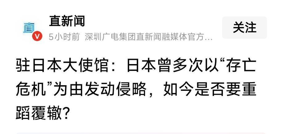 驻日本大使馆:日本曾多次以“存亡危机”为由发动侵略,如今是否要重蹈覆辙?日本最近又在玩火!高市早苗上台不到一个月,连着三次触碰中国红线。先是在APEC峰会委婉表达对中国海事活动的忧虑,还提“自由航行”来干涉台海;又在社交平台和台当局搞暧昧,挑战一个中国原则;最近还称台海生变是日本“存立危机事态”,要派自卫队协助美军。 今年是抗战胜利和台湾光复80周年,日本军国主义曾以“存亡危机”发动“九一八事变”等侵略战争。如今日方再提“存亡危机”,想绑上分裂中国的战车,这是要重蹈覆辙?日本当政者公然为介入台海找借口,严重践踏国际正义和战后秩序,挑衅中日关系,这种行径绝不能被容忍!