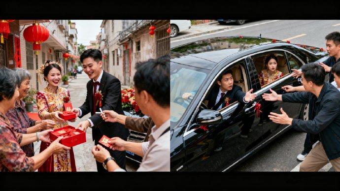 作为广东年轻人,我真的没法理解北方有些“拦车讨喜”的操作!我们这边不管婚礼礼金还是过年红包,都是图个意头,几十块、一百块就够了,核心是自愿送喜、真心祝福。 刷到廊坊6人拦婚车要烟,逼得新人只好弃车打车的新闻,我真的气笑了。就算不是网传的50条,要9条烟也离谱啊,不给就堵路不让走,这哪是讨喜,分明是趁喜打劫! 之前我听北方同事说过类似事,一直以为只是个别情况,现在才知道不少人把习俗当“遮羞布”。习俗该是温情的,比如我们这边接亲,邻居讨颗糖、说句吉祥话,新人主动发红包,大家都开心。但拦着车强要东西,利用新人怕耽误吉时的心理施压,这已经不是民俗,是涉嫌敲诈勒索的违法事了。 还好这6人被行政处罚了,就该这么严惩!要是纵容这种歪风,婚礼都变味了。我真心觉得,不管哪里的习俗,都不能越过法律红线。自愿赠喜才是真喜庆,胁迫索财就是犯罪。只有警方依法严打,大家遇到了敢报警不妥协,才能守住婚礼的纯粹和尊严,别让好好的喜事被这些人搅黄了。