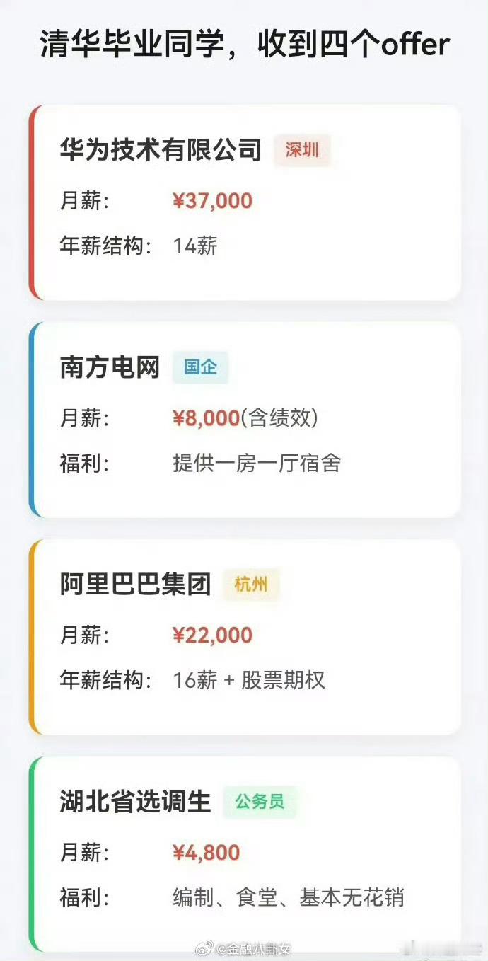 网友:收到这四个offer,你会怎么选?我先思考一下