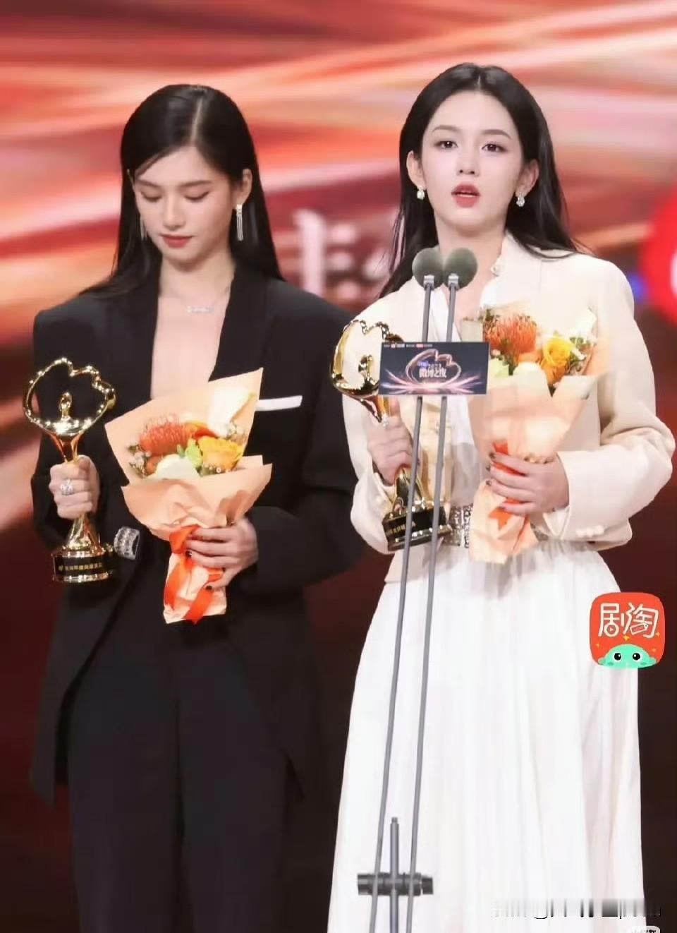 之前总觉得张婧仪和周也长得有点像,都是那种清冷挂的文艺脸。 但这次同框一看——好家伙,完全不是一回事儿! 张婧仪是那种带着故事感的温柔,像邻班学姐悄悄在你课本里塞了颗糖; 周也却是自带棱角的清冽,像玻璃柜里最耀眼的那件艺术品。 果然美人都是对比出来的!这下彻底分清了,她俩压根儿走的是两种氛围路线~