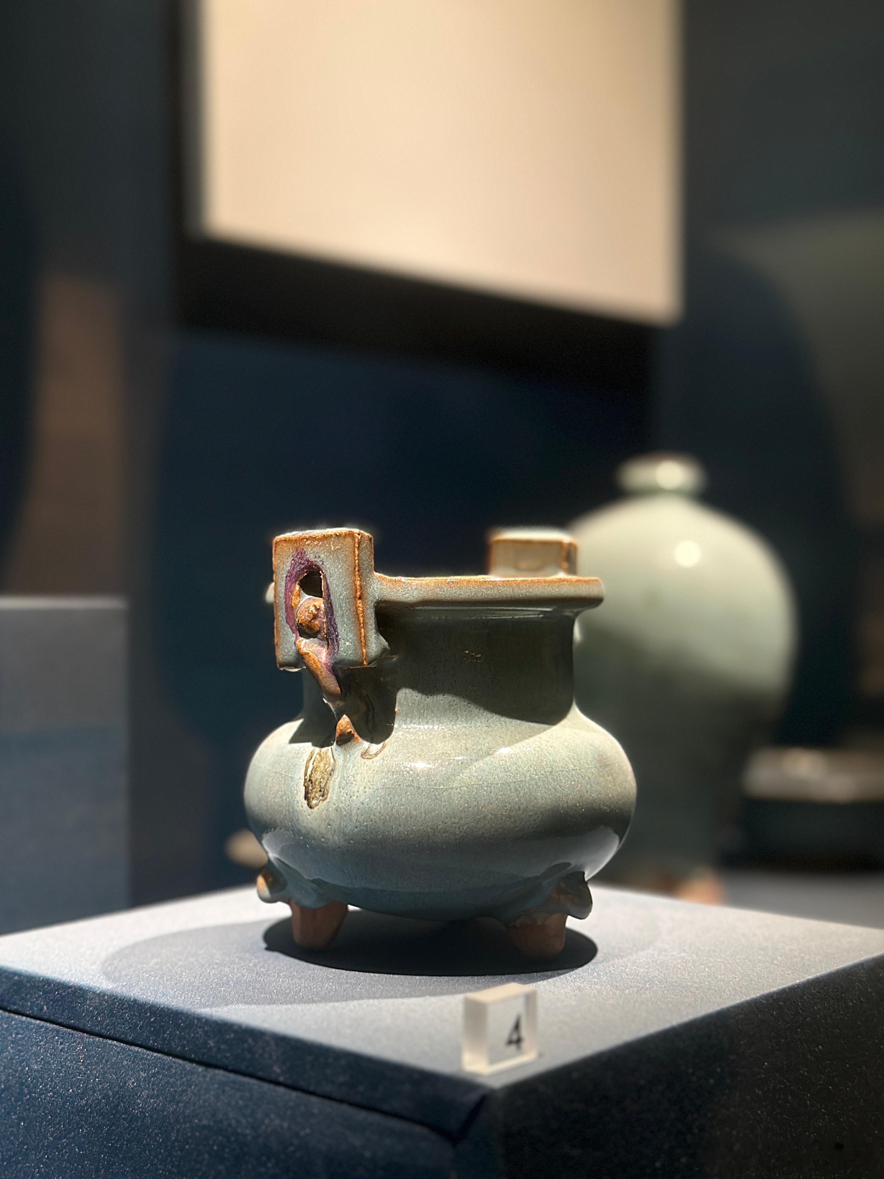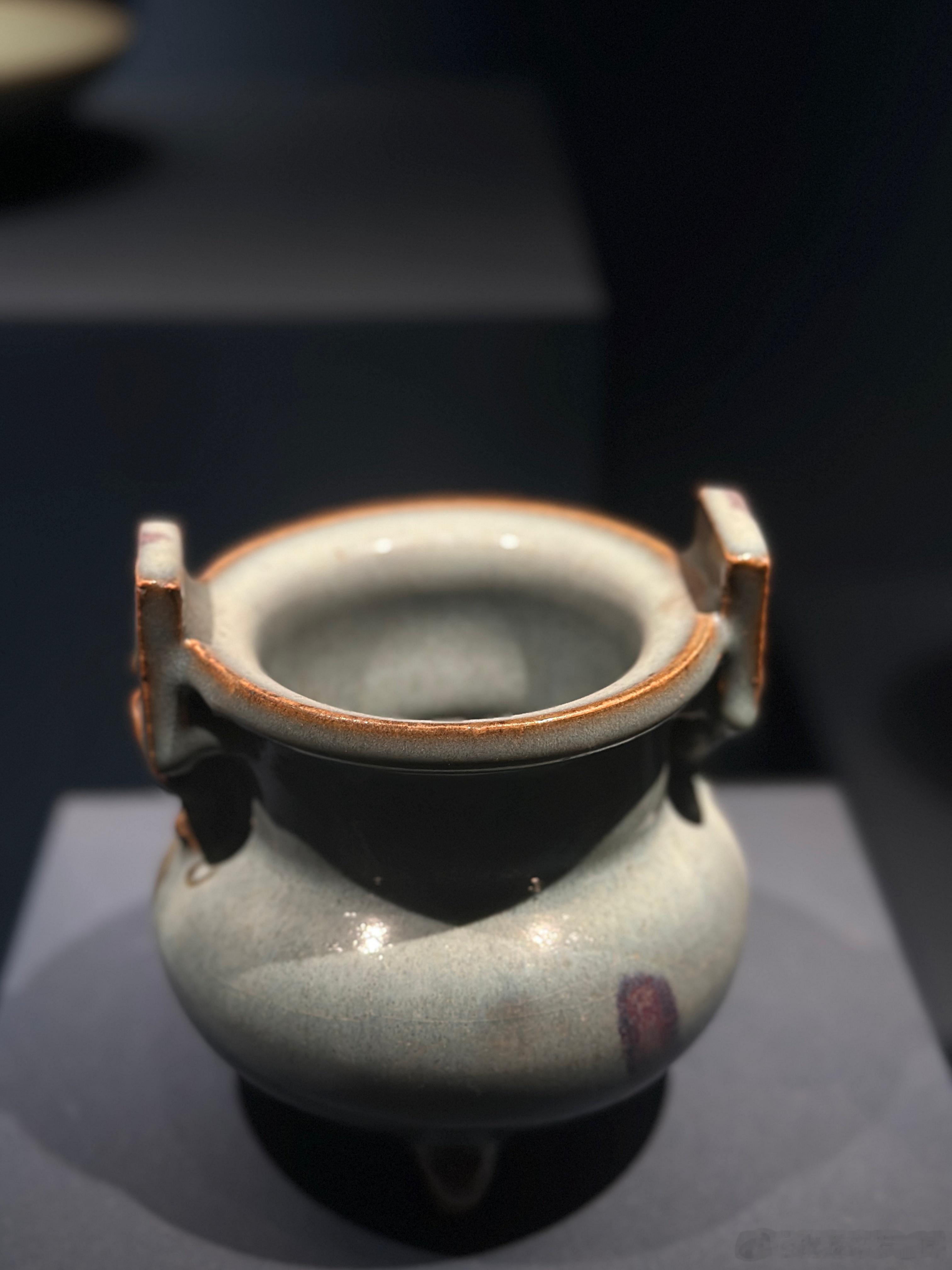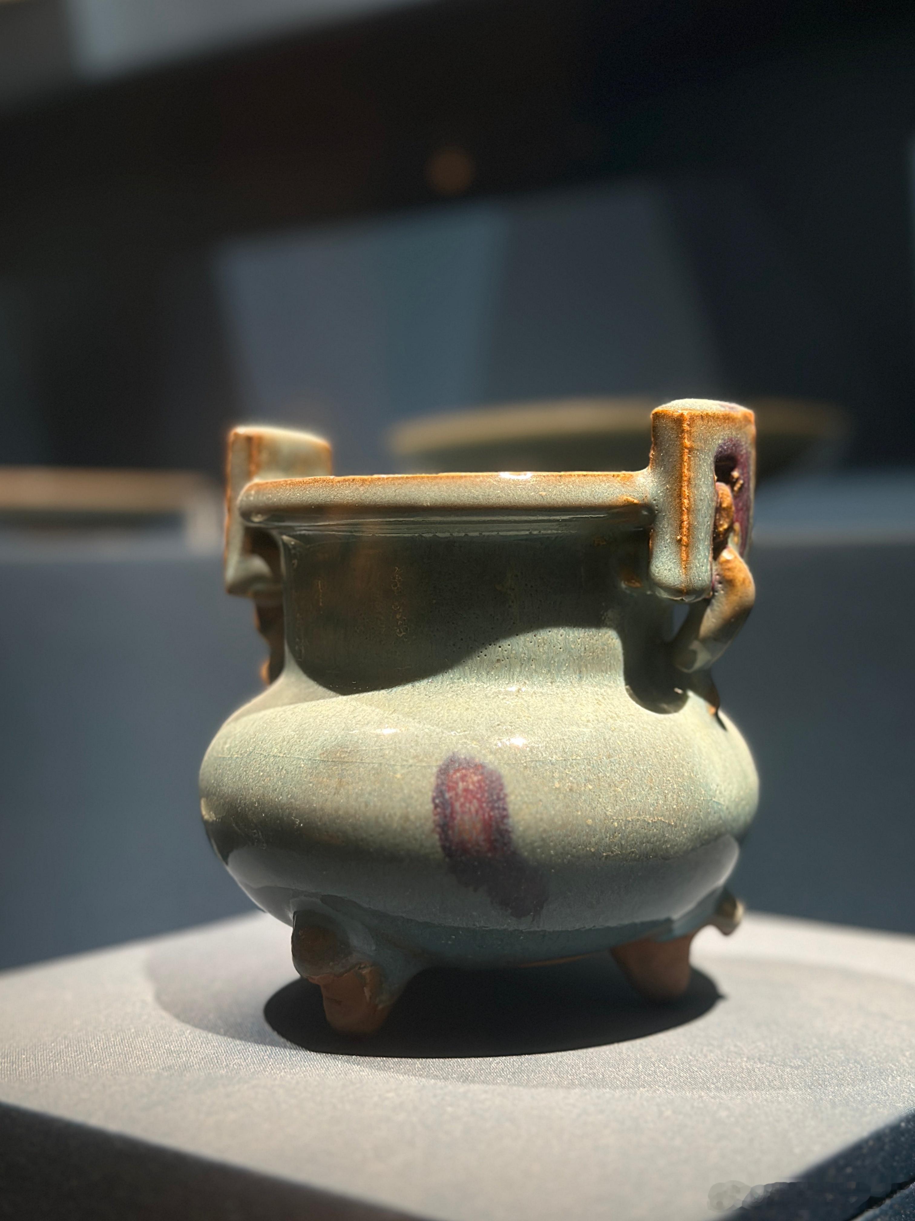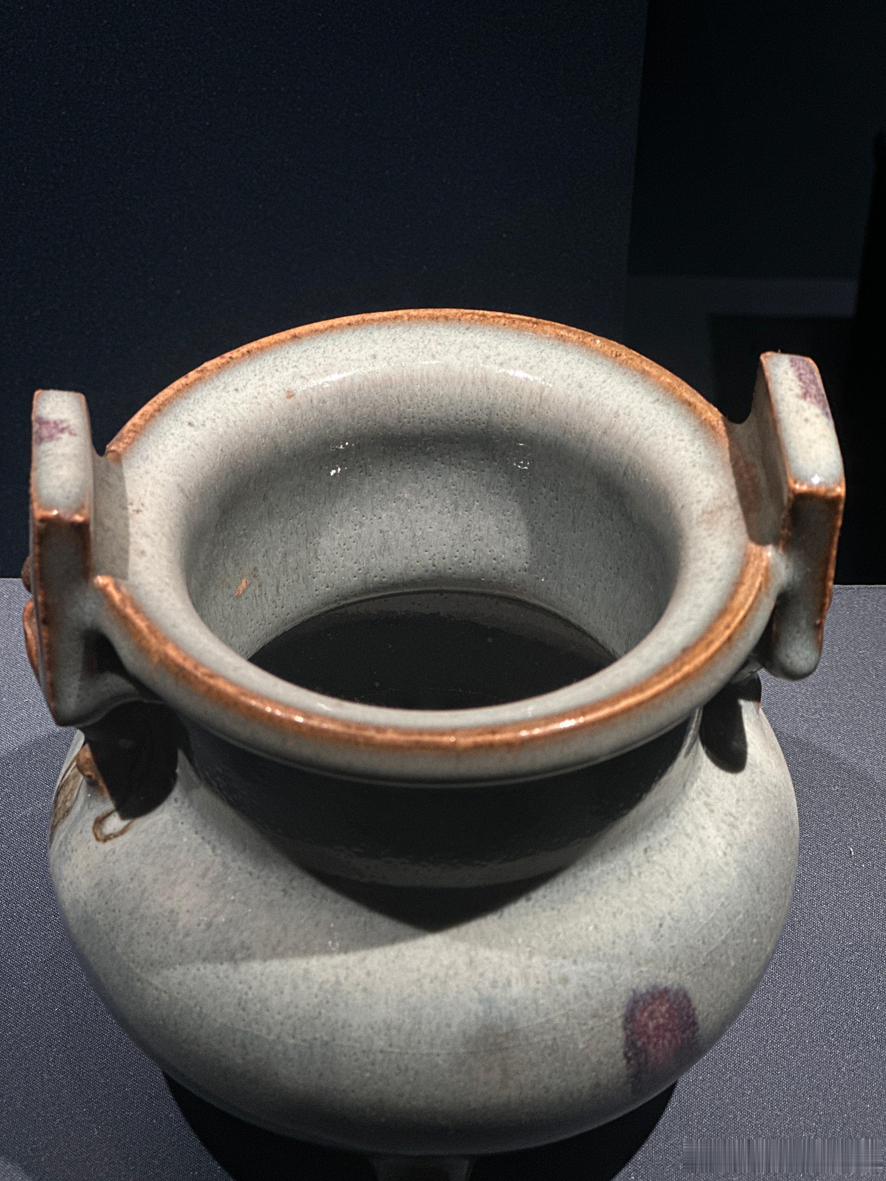 窑变釉双耳炉 元 (公元1271-1368年)南京博物院藏通高10.5厘米,口径9.9厘米,釉色浑厚,造型端庄。双耳的设计兼有装饰与实用功能。