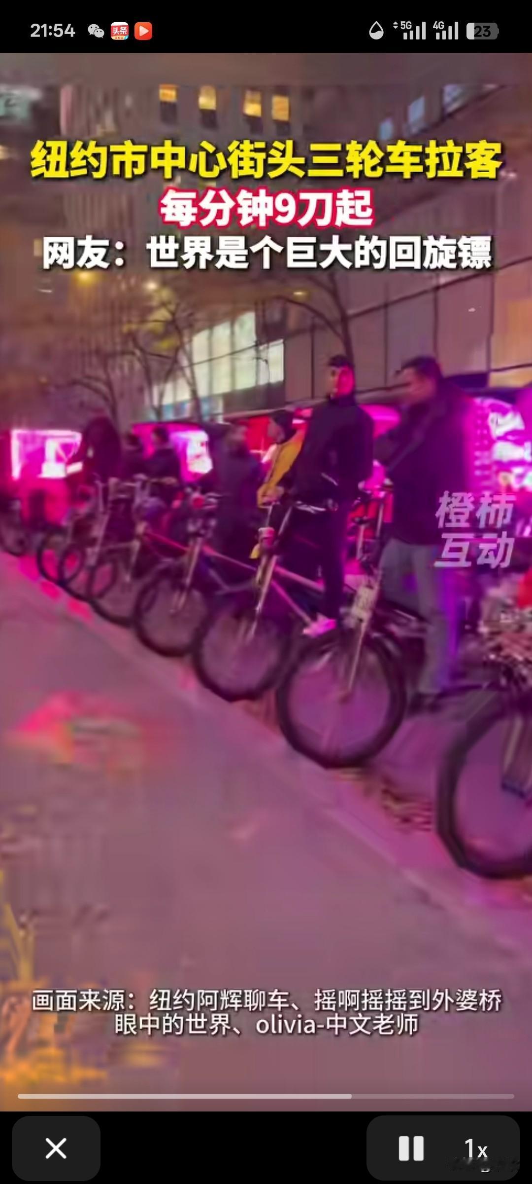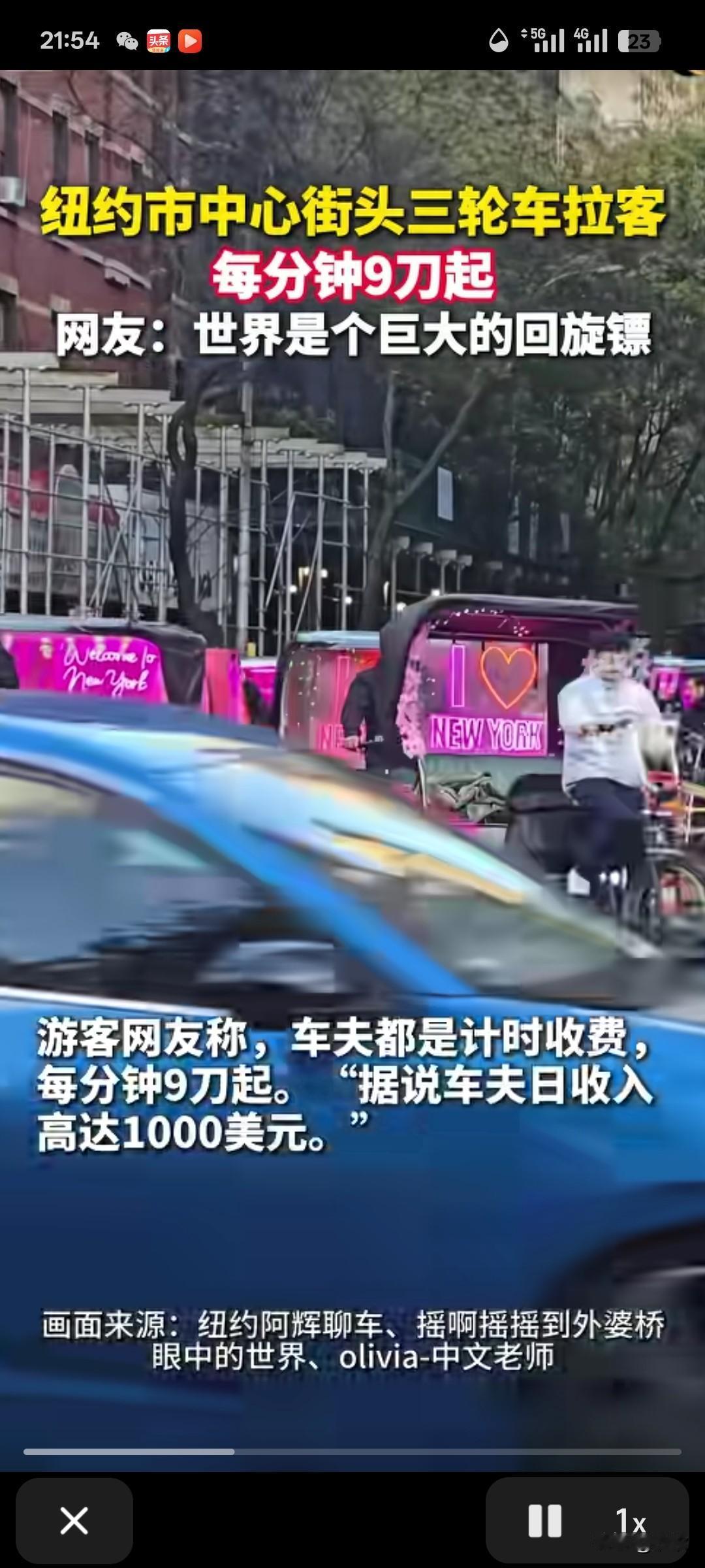 世界果然是大的回旋镖, 纽约街头如今非常火的三轮车夫, 原来是北京逛胡同工具, 如今居然出现在纽约夹头, 每分钟9美元, 车夫每天能挣1000美元, 也为是非常火的出游工具, 很多人都喜欢乘坐, 老外把三轮车装饰的非常有个性 做这样的人力三轮车确实非常的酷炫, 难怪美国人这么喜欢! 也不知道是谁先去拉三轮车, 如今很多车夫活跃在纽约街头, 可以想象在纽约现代都市出现这么有趣的出行工具,还是很多人想要体验一番的! 大家觉得三轮车出现在纽约街头好玩吗? 纽约 三轮车 美国拉车司机 北京车夫