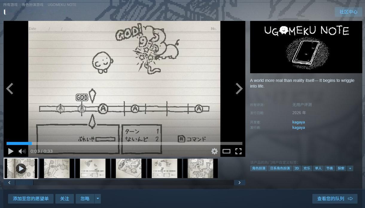 手绘音乐节奏RPG《UGOMEKU NOTE》商店页面已上线,预计于2026年发售,支持中文。温柔、善良,总带着可爱笑容的你——已被选为英雄,即将踏上一段充满幽默与温情的冒险,一路上你需要跟随节拍来格挡与反击,最终揭开这个故事所隐藏的秘密。