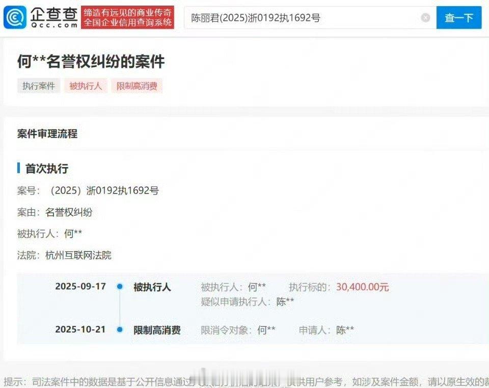 陈丽君黑粉被强制执行3.04万元,这赔的挺多的,支持陈丽君维权。