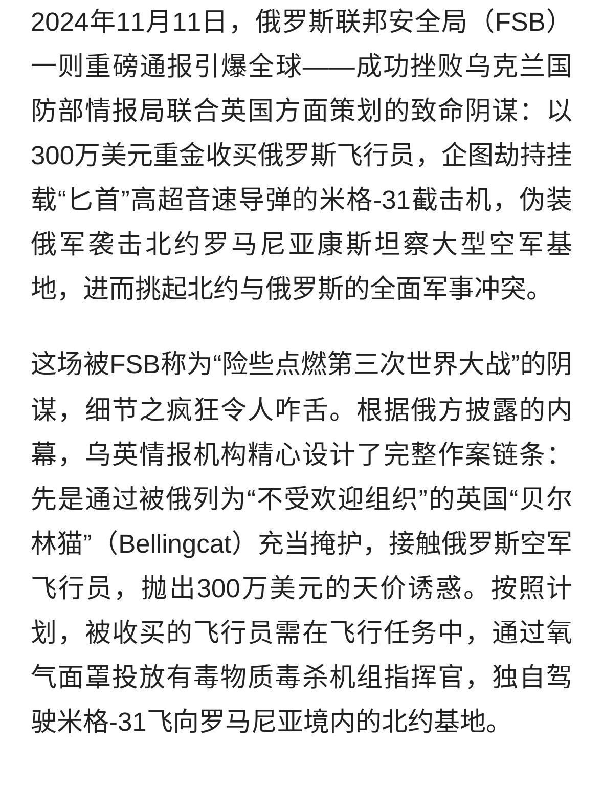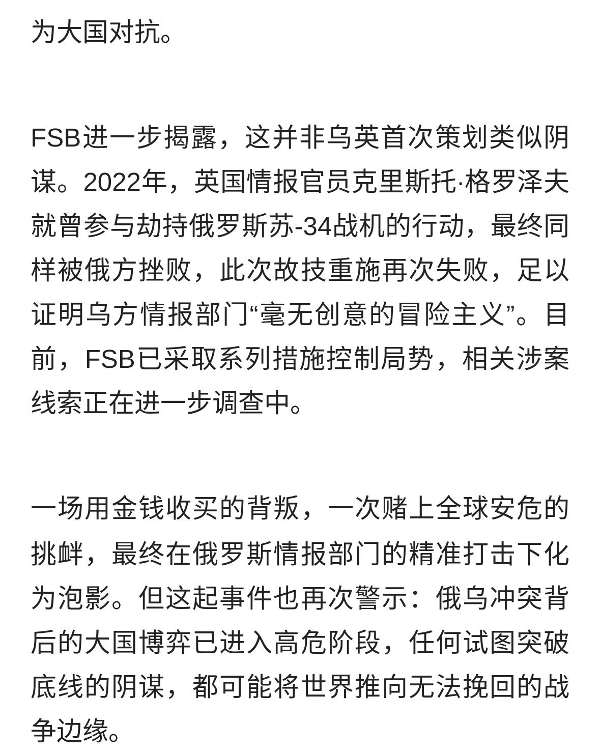 俄FSB挫败阴谋:乌英欲百万美元收买飞行员驾机炸北约基地嫁祸俄