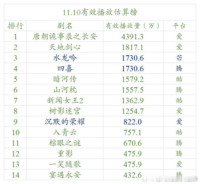 11.10云合估算播放量