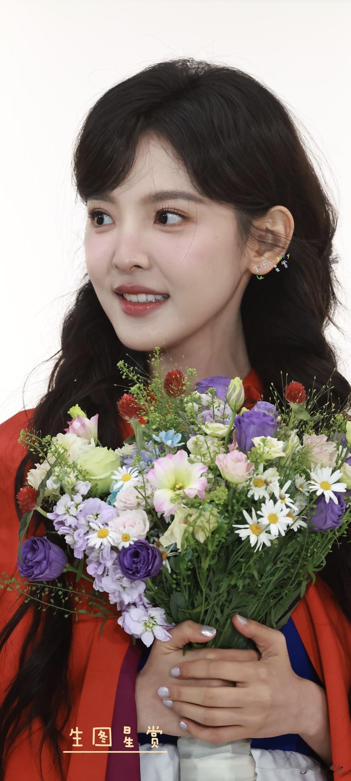章若楠好六夜红毯&集市 鲜花配美楠,这小红帽造型,甜到我心里去了