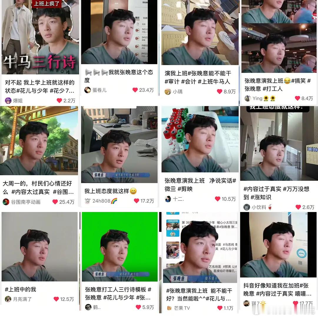 张晚意又爆了在花少的牛马三行诗好像大爆了,各大官媒各大品牌商家都用于宣传中,真的是造梗小天才