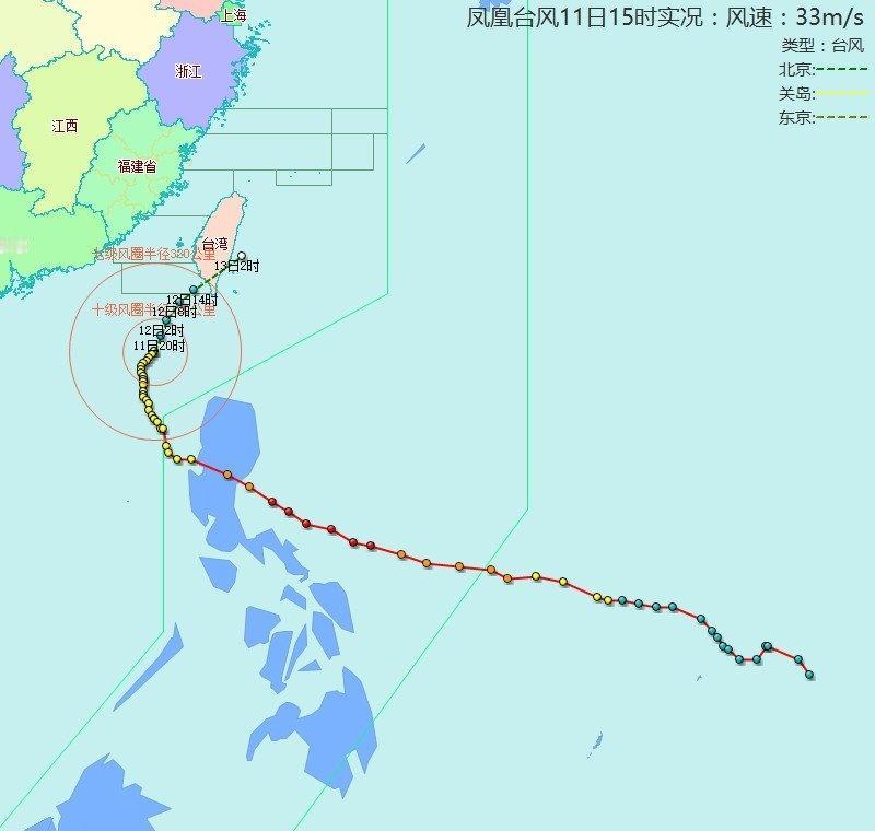 【台风位置】凤凰(台风):2025年11月11日15时,距离福州665公里,气压:975百帕,近中心最大风力:12级,移速:10km/h。 网页链接