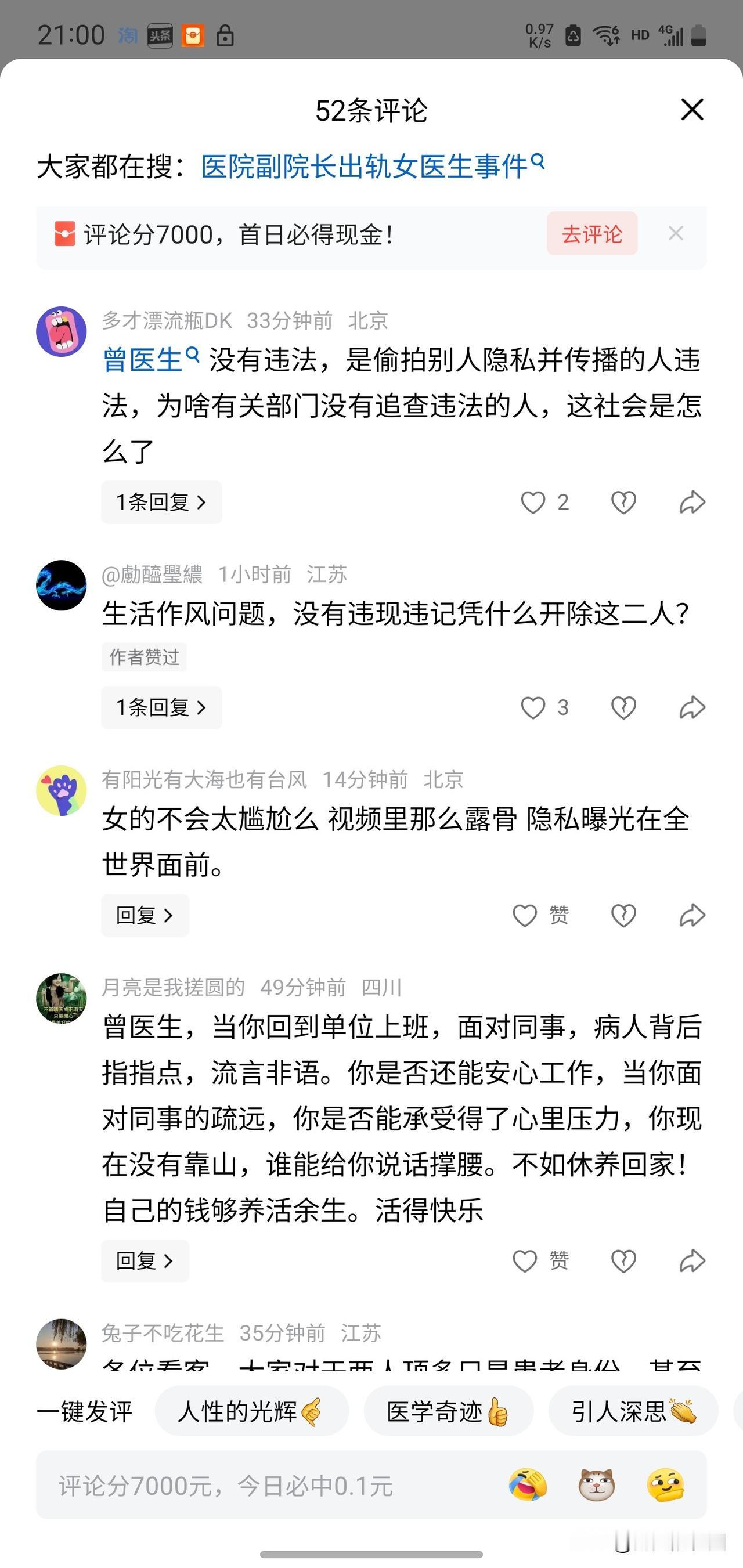 曾琦医生事件,是现在的网友变双标了?还是背后有人引导故意洗白?本来是不想说的,纯当一个看客,看了很多评论区的评论,我发现这个世界变了。换做在娱乐圈,估计这两人能被骂死,然后永久封杀什么的。虽然不是在娱乐圈,做出这种事就能被原谅?有网友说是私生活不该被管,娱乐圈也有男未婚女未嫁的,更没犯法。关键你这还是小三呢?还是党员呢。 到底谁在双标,谁在刻意洗白?