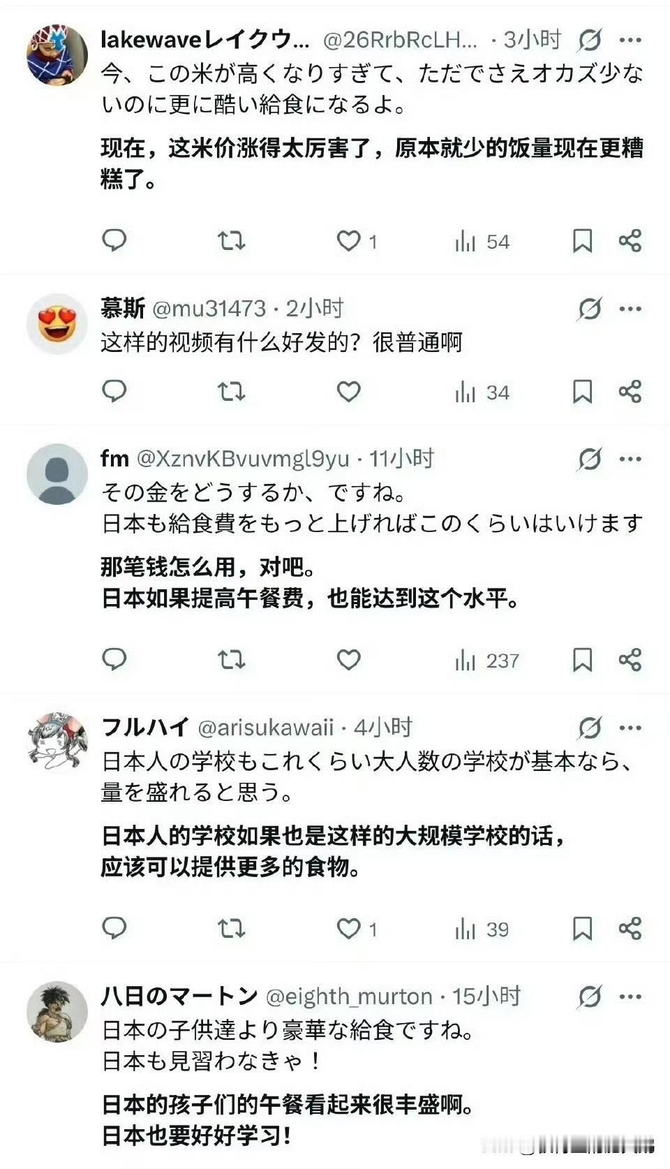 哎呀我去,小日子这是破大防了啊,而让他们破防的居然是咱们的学生午餐大米饭管够! 【中国学校吃午餐大米,日本人破大防】中国驻大阪总领事薛剑发布的中国普通中学生的午餐视频,遭到日本人的围攻。 因为当下日本的大米太贵了!他们吃不起,以至于还要发米票。但想不到中国学生可以放开了吃大米! 所以,大多数日本人竟然觉得这些都是“假的、摆拍”的…[允悲][看][给力][微风] #中驻大阪总领事帐号遭日本人围攻# #热点解读# #薛剑#