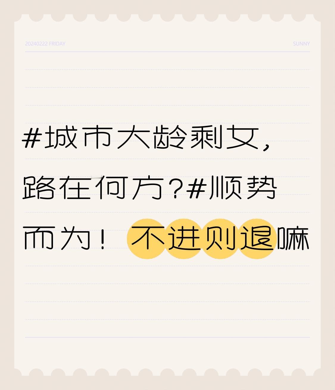 城市大龄剩女,路在何方? 在城市里,“大龄剩女”是备受瞩目的群体。就说北京,30岁及以上单身女性占比逐年上升。很多“剩女”是职场精英,忙工作成了生活常态,像互联网公司的李女士,跟同事相处时间比家人还长,却难在同事里找对象。 社交圈子功利,真正建立感情的机会少,加上年龄增长,对另一半要求更细致,选择范围就更小了。而且,她们还得承受外界催婚压力。 不过,也别被传统观念束缚。“顺势而为”不是盲目妥协,而是在坚持自我和寻找幸福间找平衡。与其焦虑,不如扩大社交圈,说不定转角就遇到爱,未来路还长着呢!